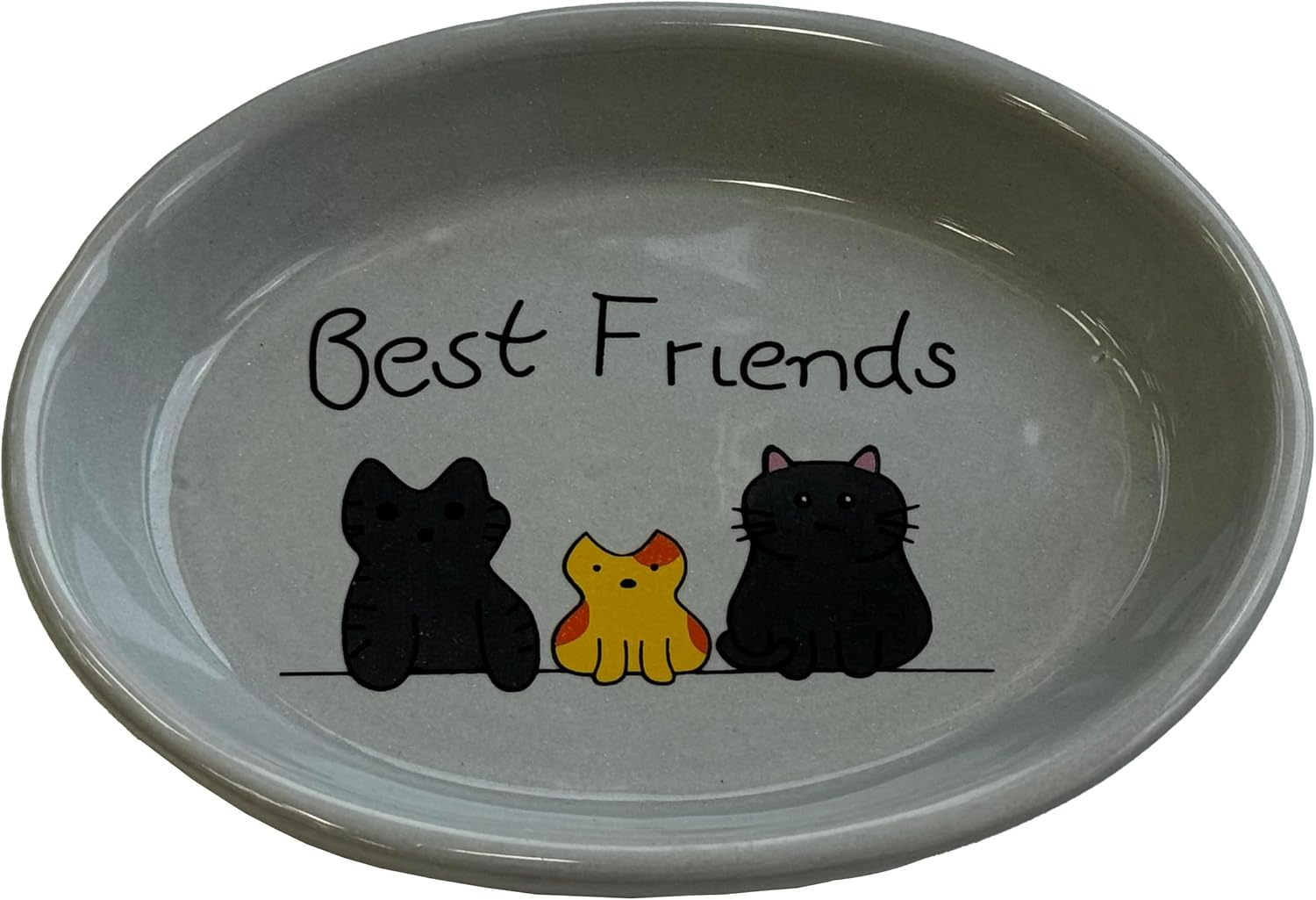SPOT Best Friends Oval Cat Food Dish - Ceramic Plate with Low Edges, Saucer with Whisker-Friendly Shape and Low Profile Sides, Ideal for Wet or Dry Cat Food, Dishwasher Safe, 6in, Light Grey