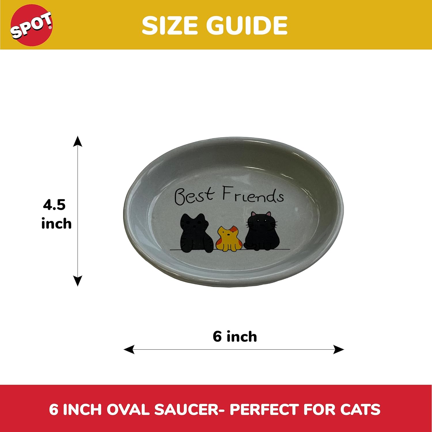 SPOT Best Friends Oval Cat Food Dish - Ceramic Plate with Low Edges, Saucer with Whisker-Friendly Shape and Low Profile Sides, Ideal for Wet or Dry Cat Food, Dishwasher Safe, 6in, Light Grey