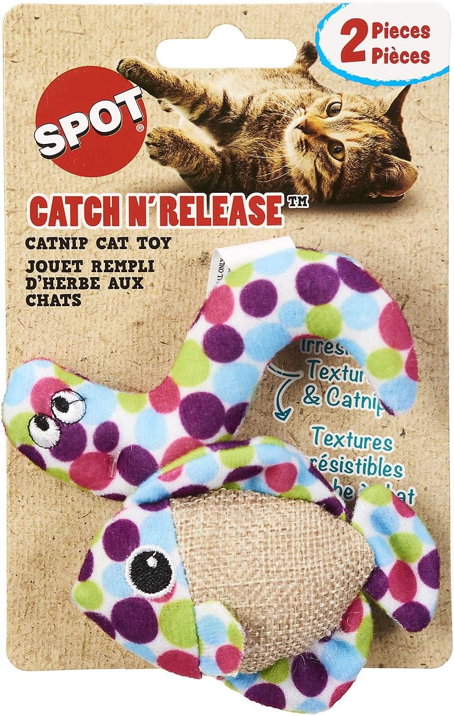 SPOT Catch N' Release Cat Toy with Irresistible Texture and Catnip, Indoor Cat Essentials, for Cats and Kittens, 2 Assorted Figures