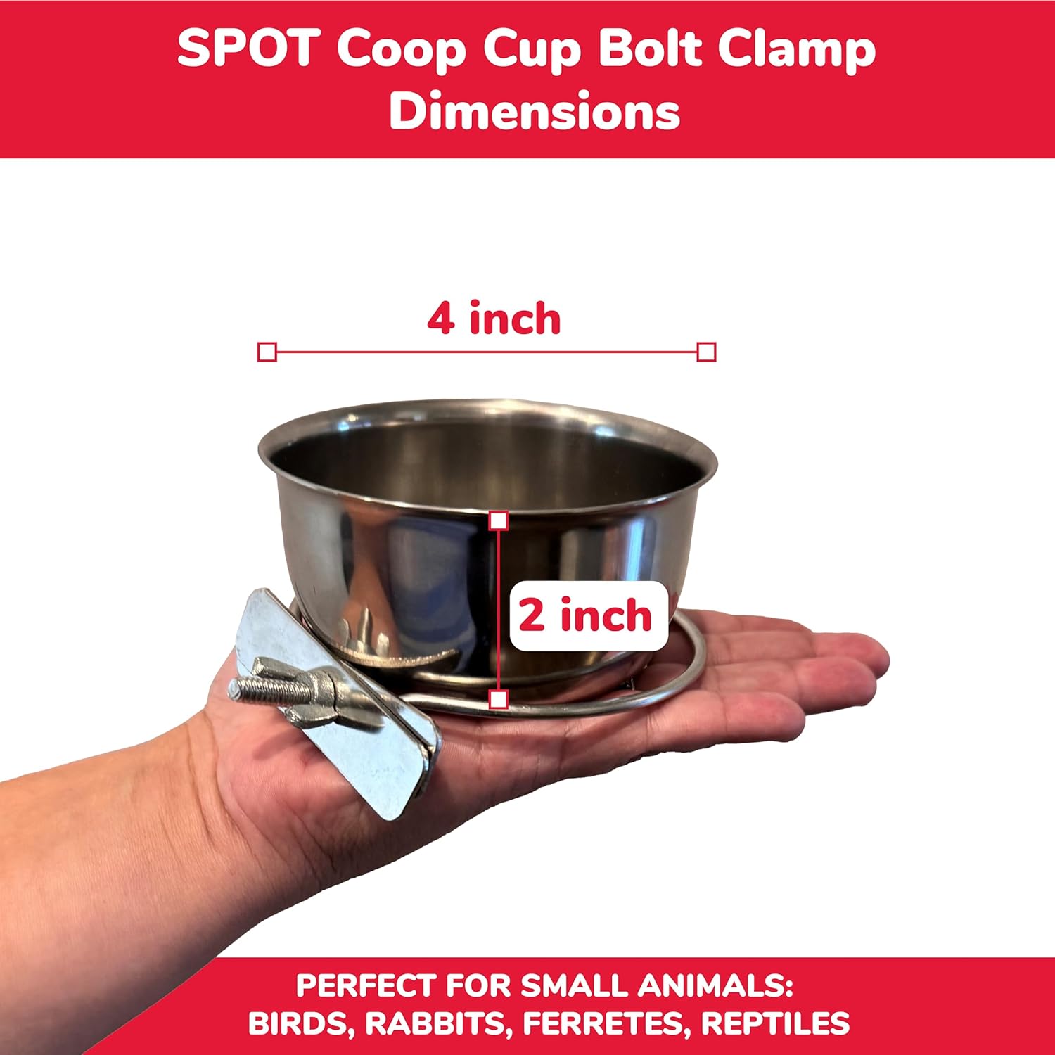 SPOT Coop Cup Bolt Clamp - Stainless Steel Hanging Bowl for Crates, Removable, Chew-Proof Pet Feeding Dish, Ideal for Birds, Parrots, Rabbits, Ferrets, Reptiles