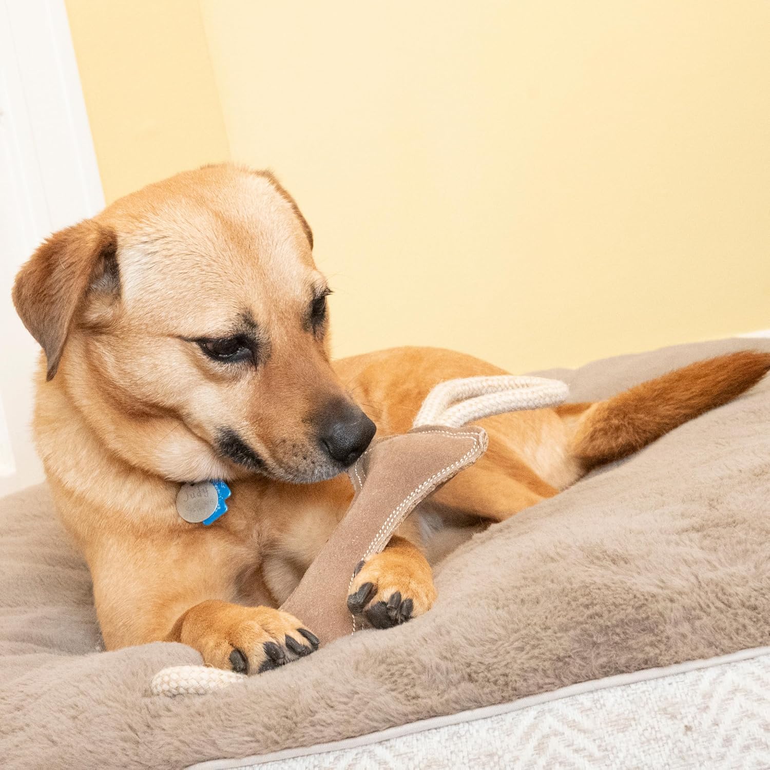 SPOT Dura-Fused Leather Bone Tug Dog Toy – Real Leather & Jute Fabric, Double-Stitched & Durable, Squeaky Interactive Tug Toy with Double Rope Handle for Moderate Chewers, Soft Stuffed Fetch Toy, 18in