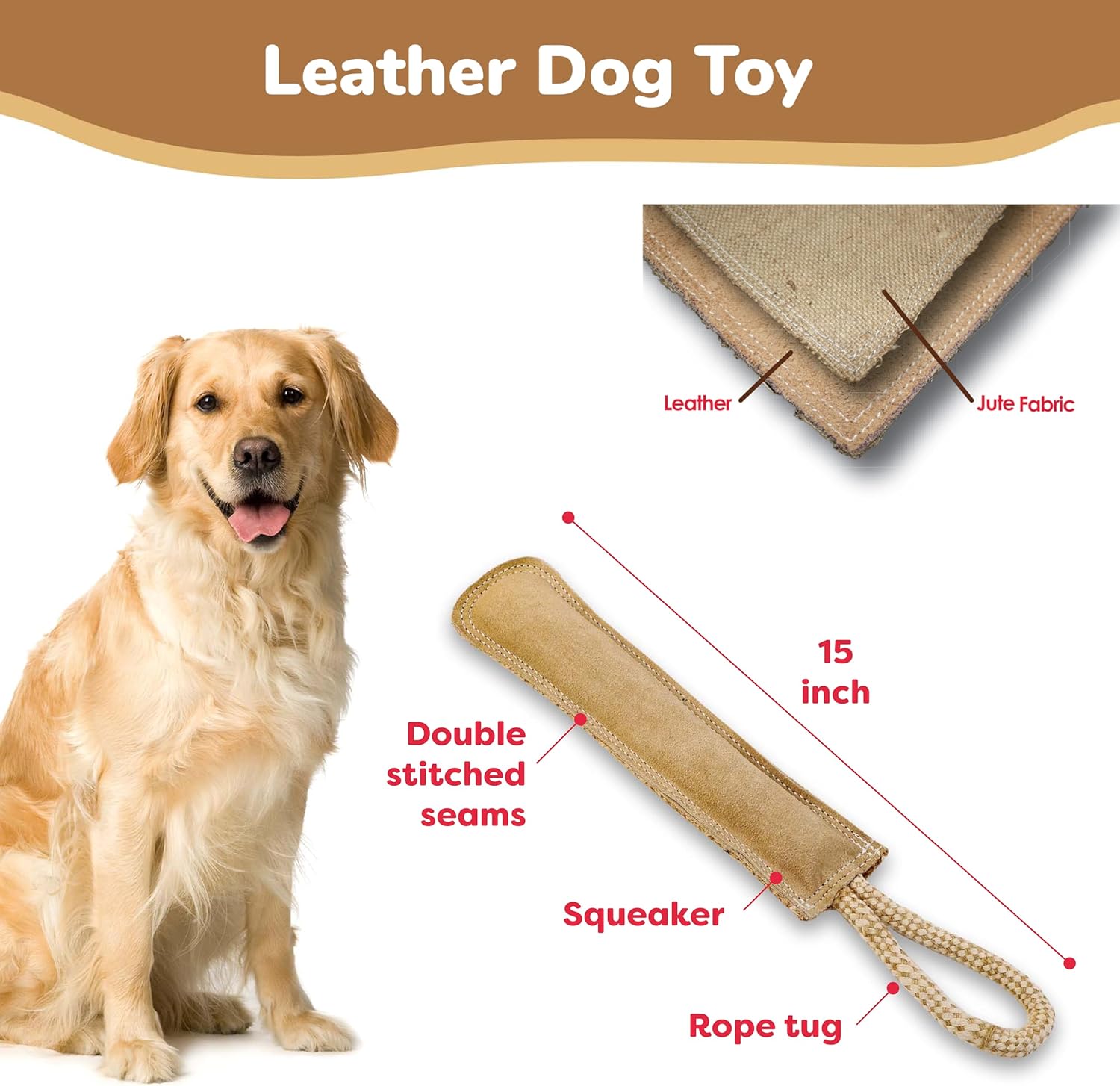 SPOT Dura-Fused Leather Retriever Dog Toy – Real Leather & Jute Fabric, Double-Stitched & Durable, Squeaky Interactive Tug Toy with Rope Handle for Moderate Chewers, Soft Stuffed Fetch Toy, 15in