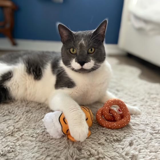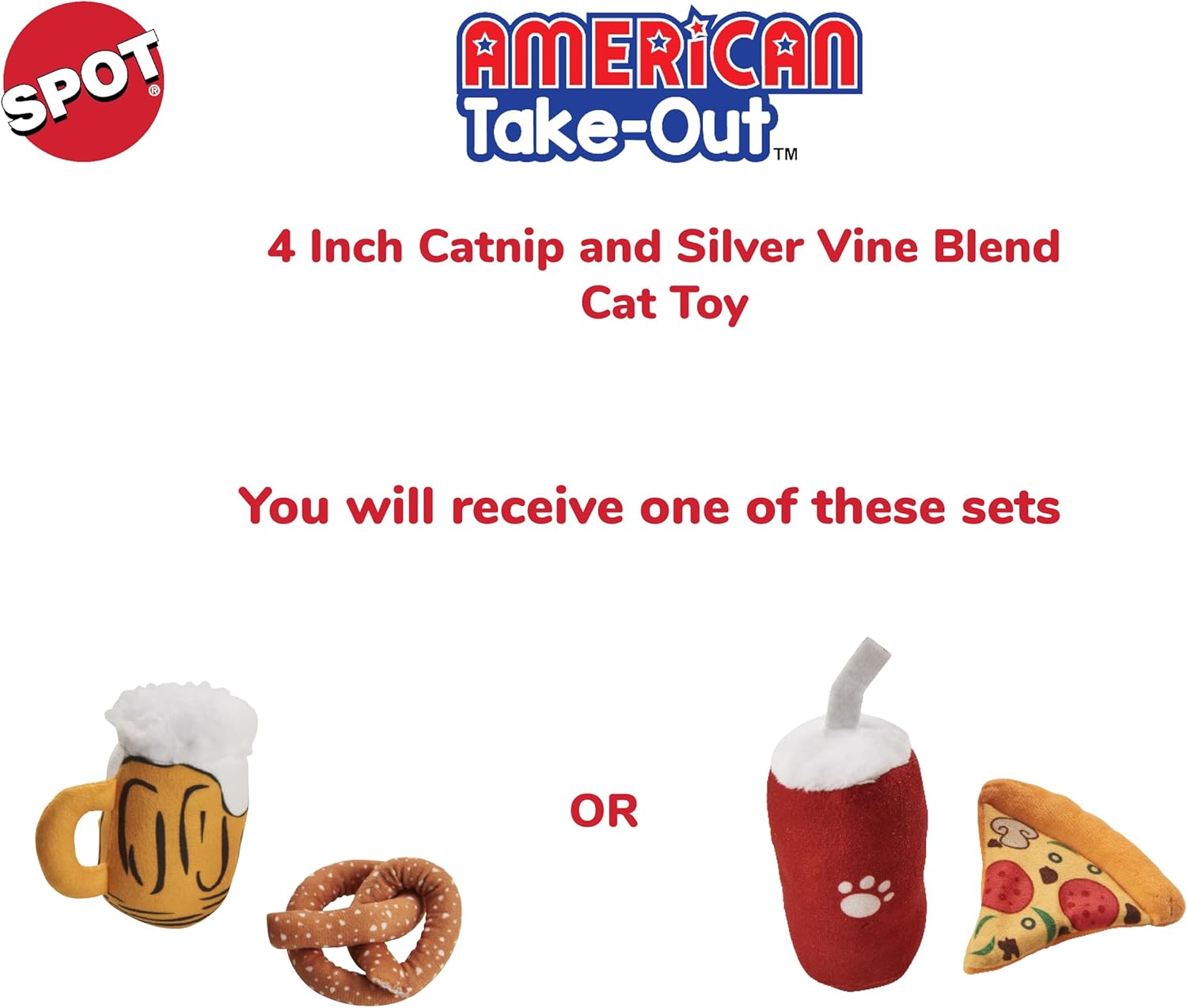Your cat's American Take out order is ready Perfect for pouncing and batting Multiple textures feel good...