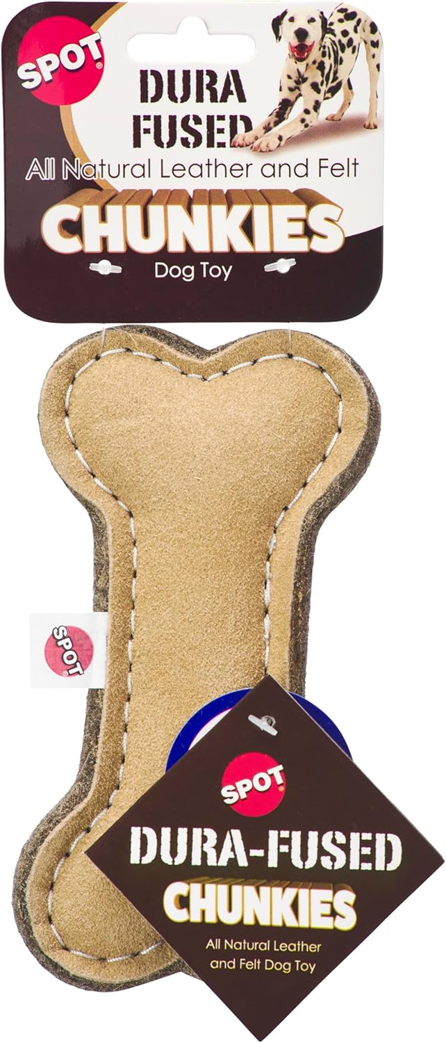 SPOT Dura-Fused Chunkies- Bone - All Natural Leather and Felt Dog Toy- Durable, Long Lasting, Extra Thick Dog Chew Toy for Aggressive Chewers, Great for Adult Dogs and Teething Puppies, 6in