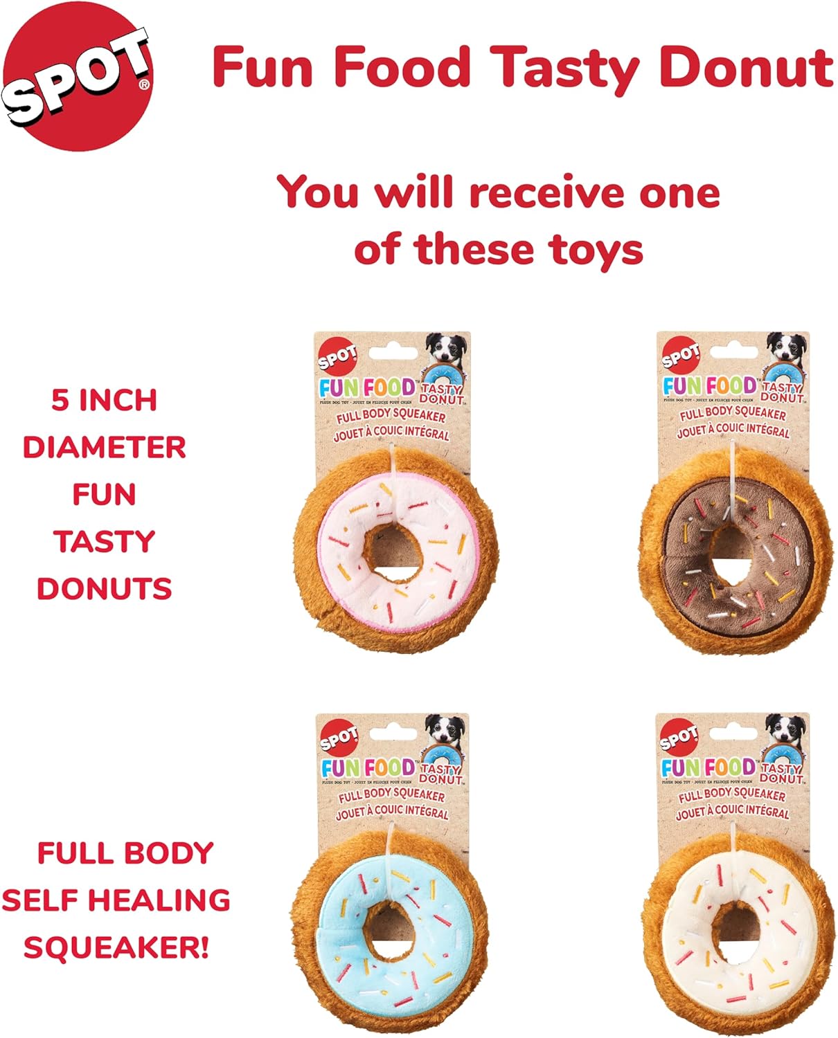 SPOT Fun Food Tasty Donut- Plush Chew Toy with Self Healing Squeaker