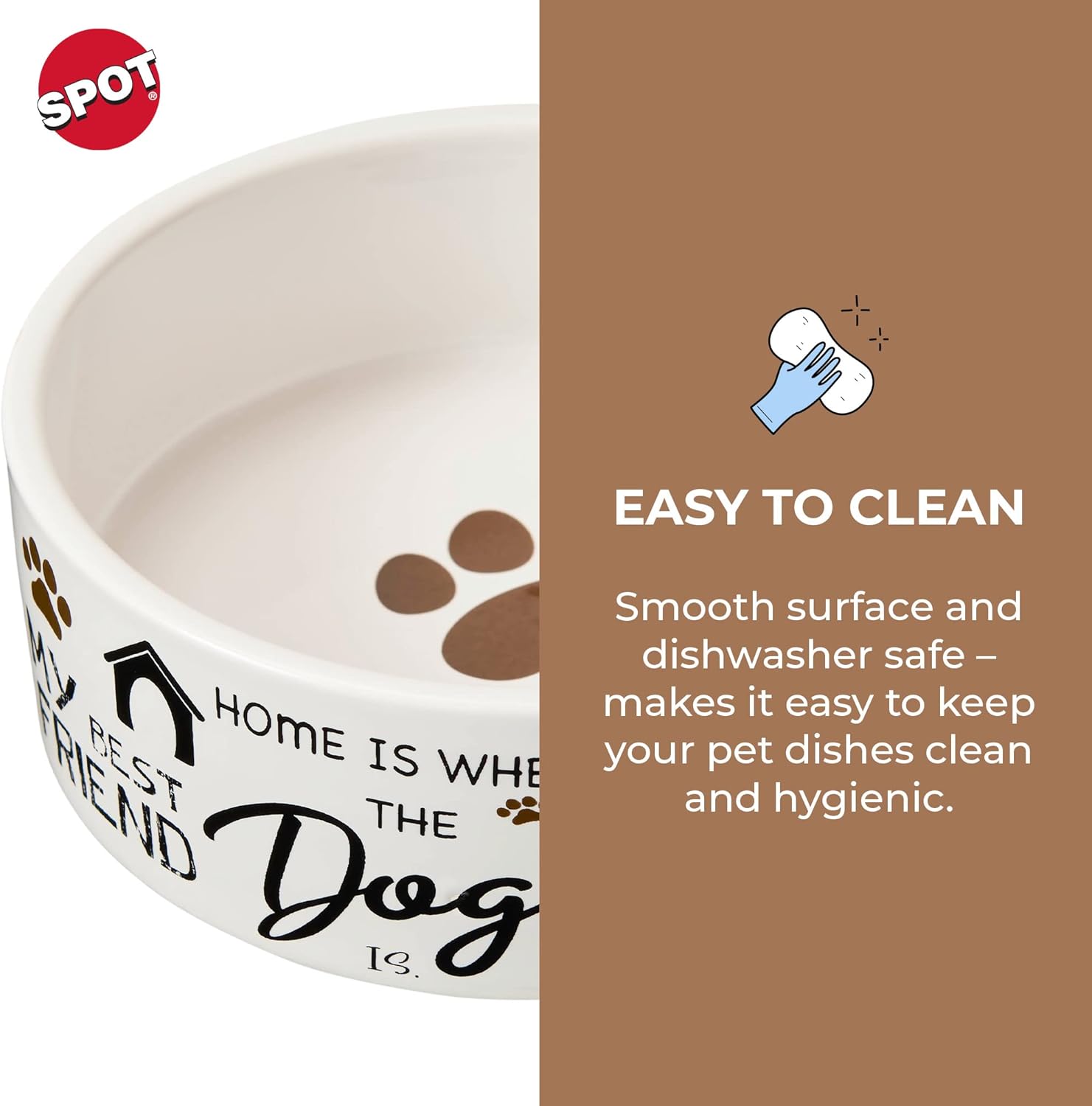 SPOT I Love Dogs Dish -Round Ceramic Food/Water Bowl with High Walls for Pets, Dishwasher Safe, Ideal for Small Dogs, Cats, Reptiles, Large Birds