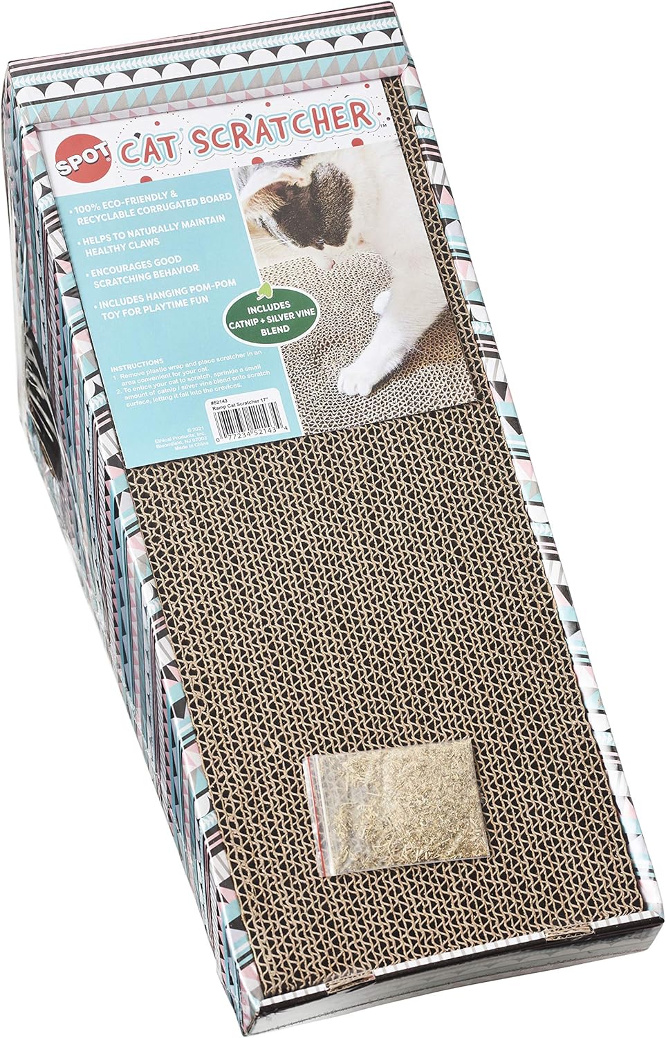 SPOT Ethical Products Corrugated Cardboard Cat Scratcher / 17" Ramp with Cutout/with Catnip and Silver Vine, Multi