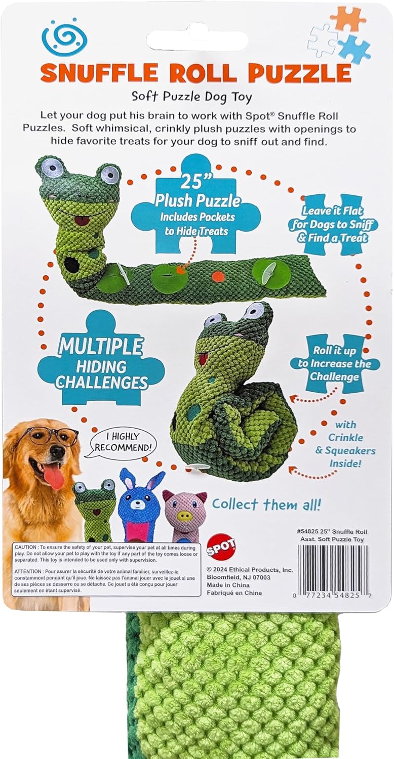 SPOT Snuffle Roll Puzzle Toy - Interactive Feeding Toy for Dogs, Provides Mental Stimulation, Roll-Up Toy, 3 Pockets to Hide Treats, Crinkle and 2 Squeakers - 25Inch Puzzle Toy, Style May Vary