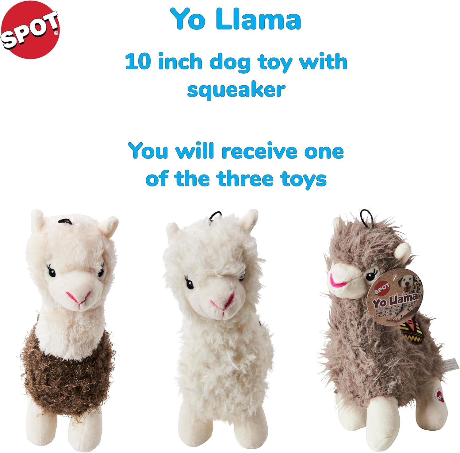 SPOT Yo Llama Plush Dog Toy with Squeaker - Soft, Stuffed, Plush Toy for Small/Medium Dogs & Puppies - Enrichment for Light Chewers & Cuddlers, 10in, 1 Piece, Assorted Colors
