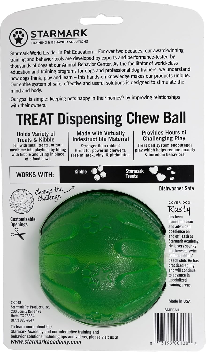 Starmark Treat Dispensing Chew Ball Tough Dog Toy, Medium/Large