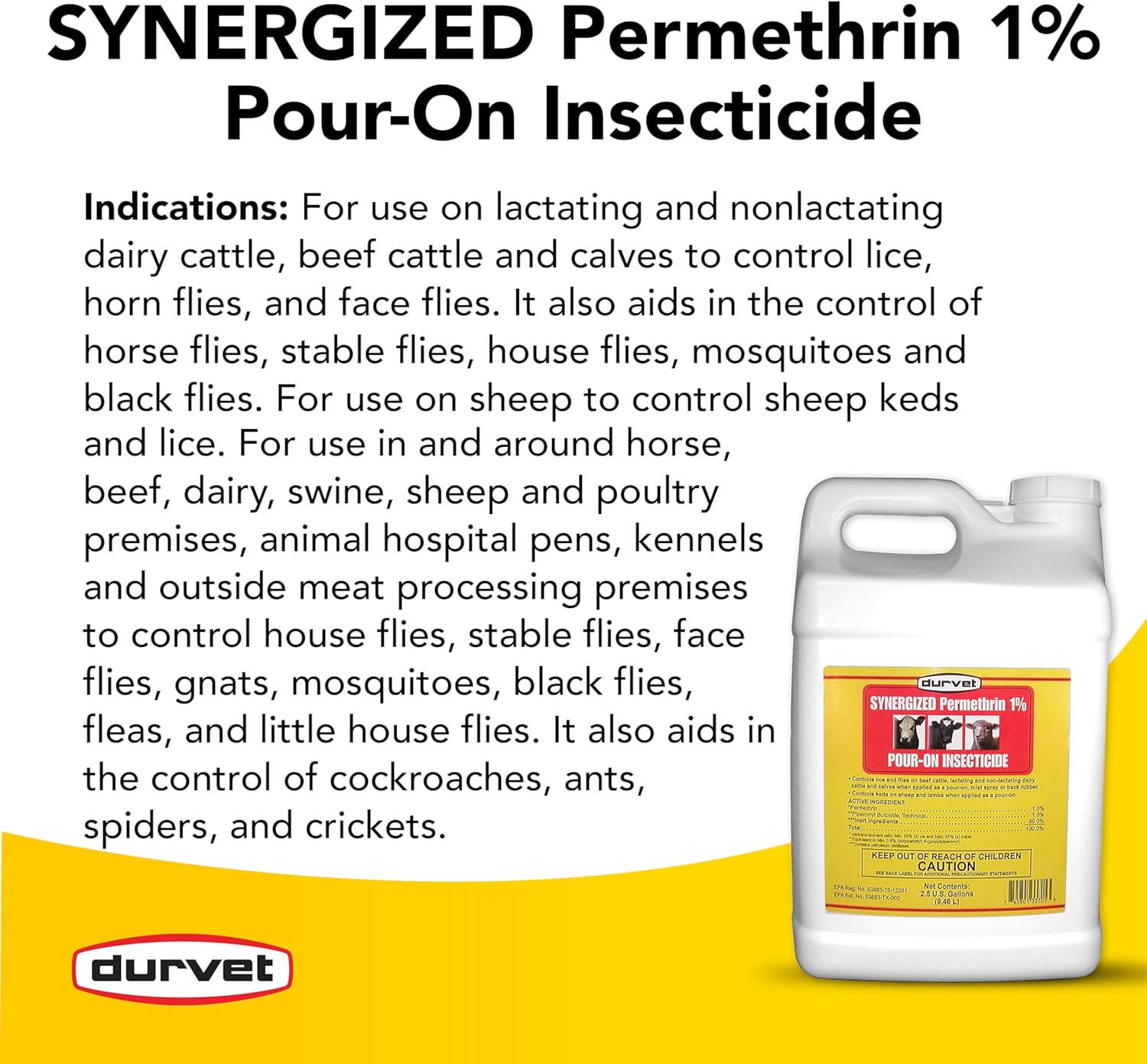 Synergized Permethrin 1% is a reliable, versatile, and economical solution for year-round insect control in livestock and farm environments.