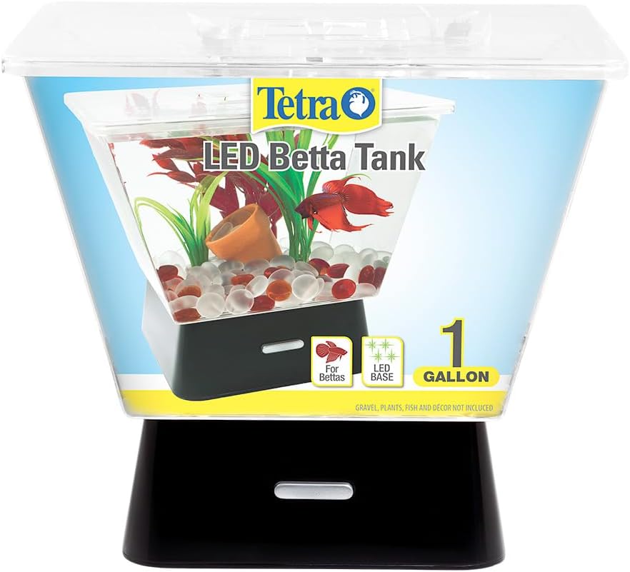 Tetra LED Betta Tank Kit 1 Gallon, Trapezoid aquarium With Base Lighting (24050)
