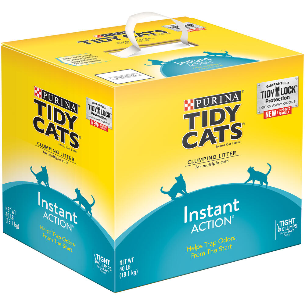 Purina Tidy Cats Instant Action Cat Litter delivers fast and reliable odor control, making it ideal for multiple-cat households. This scented clumping litter guarantees 10-day odor protection when used as directed, targeting ammonia, urine, and fecal odors with its quick-release deodorizing system. The low-dust formula ensures a clean pour, while strong, tight clumps make scooping and cleanup simple. Designed with TidyLock protection, it locks away odors to keep your home smelling fresh and inviting.