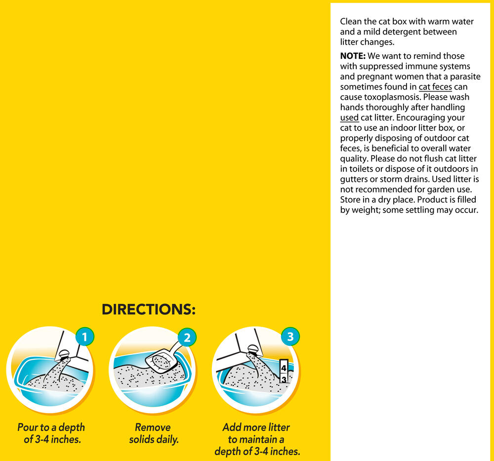 Pregnant women and those with suppressed immune systems should avoid handling used cat litter due to the risk of toxoplasmosis. Always wash hands thoroughly after handling. Do not flush litter or dispose of it outdoors in gutters or storm drains. Used litter is not recommended for garden use. Product is filled by weight; some settling may occur.