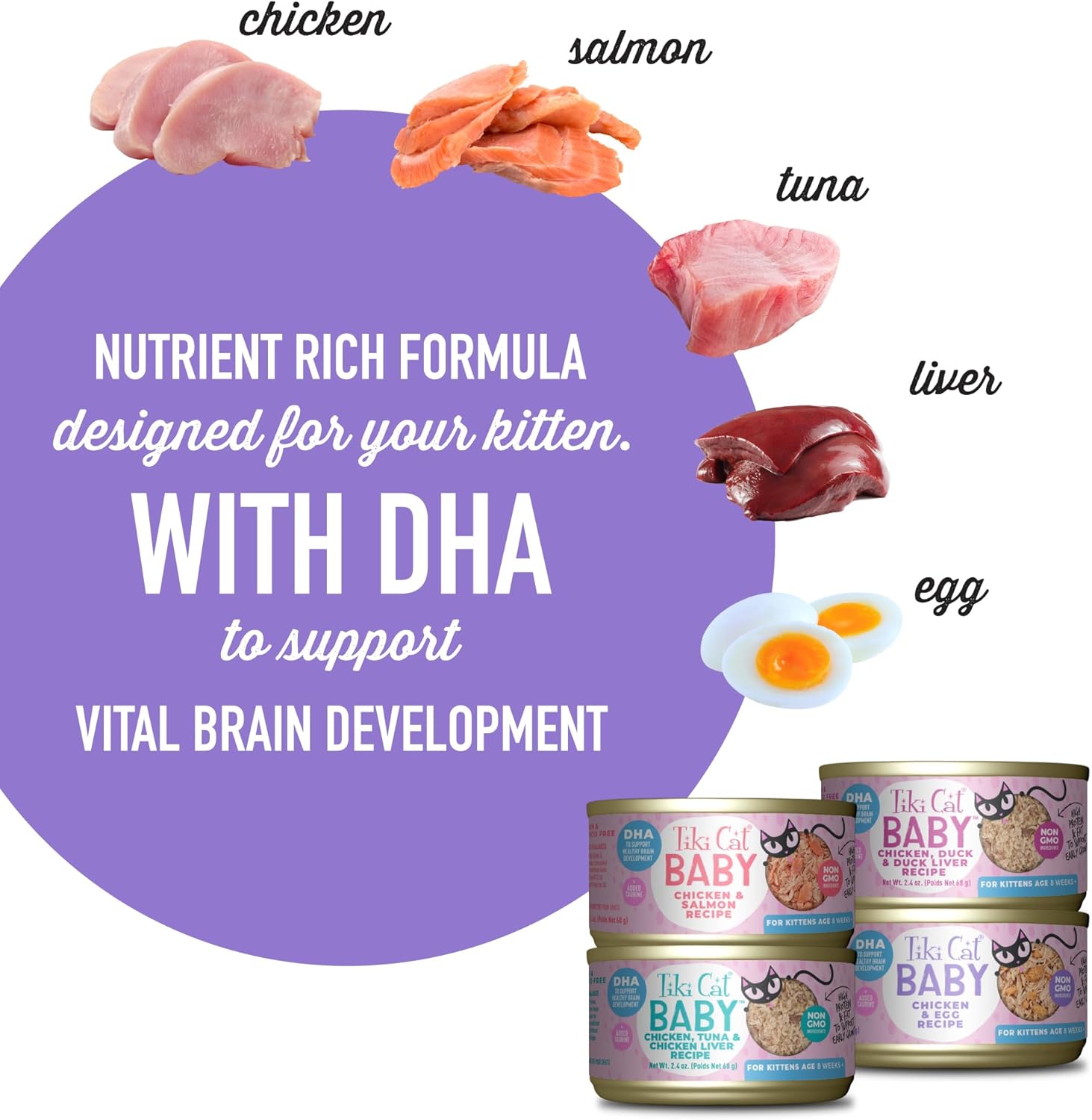 Tiki Cat Baby, Shreds Variety Pack, High-Protein and Flavorful, Wet Cat Food for Kittens 8 Weeks Plus