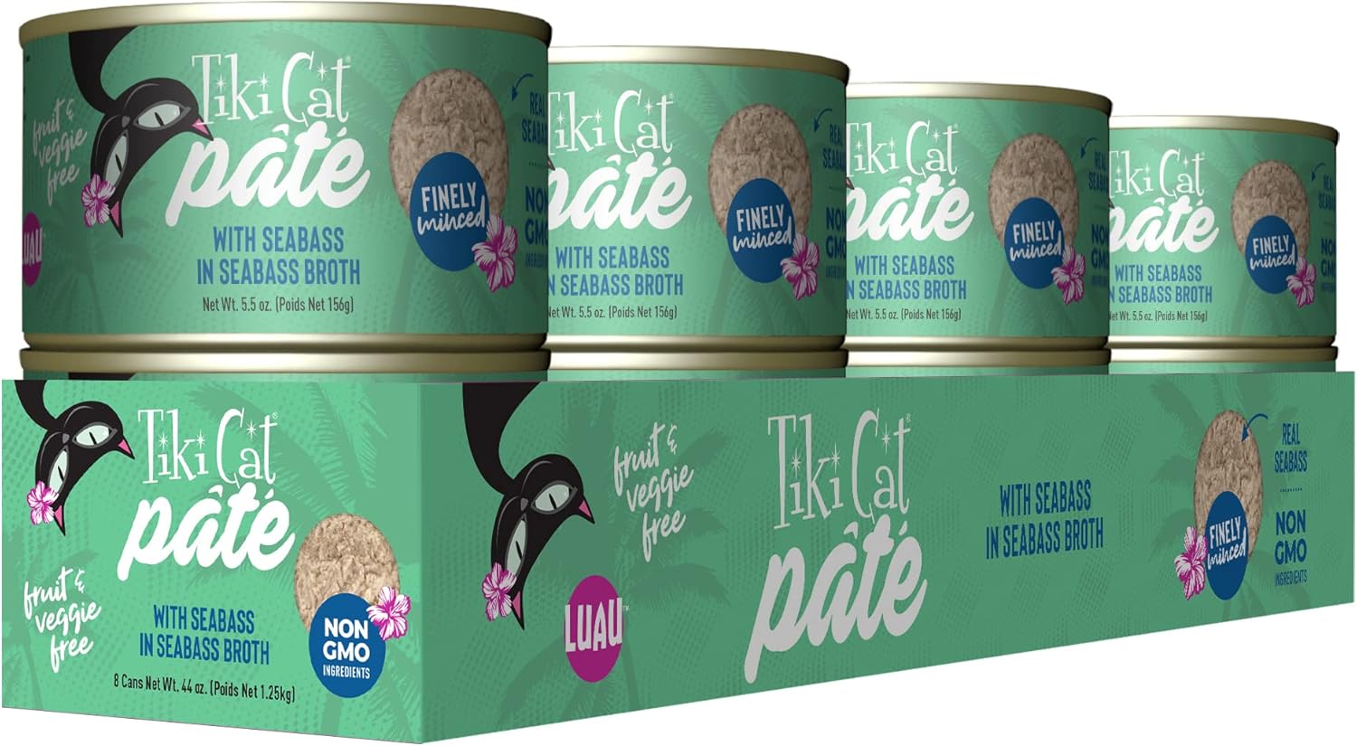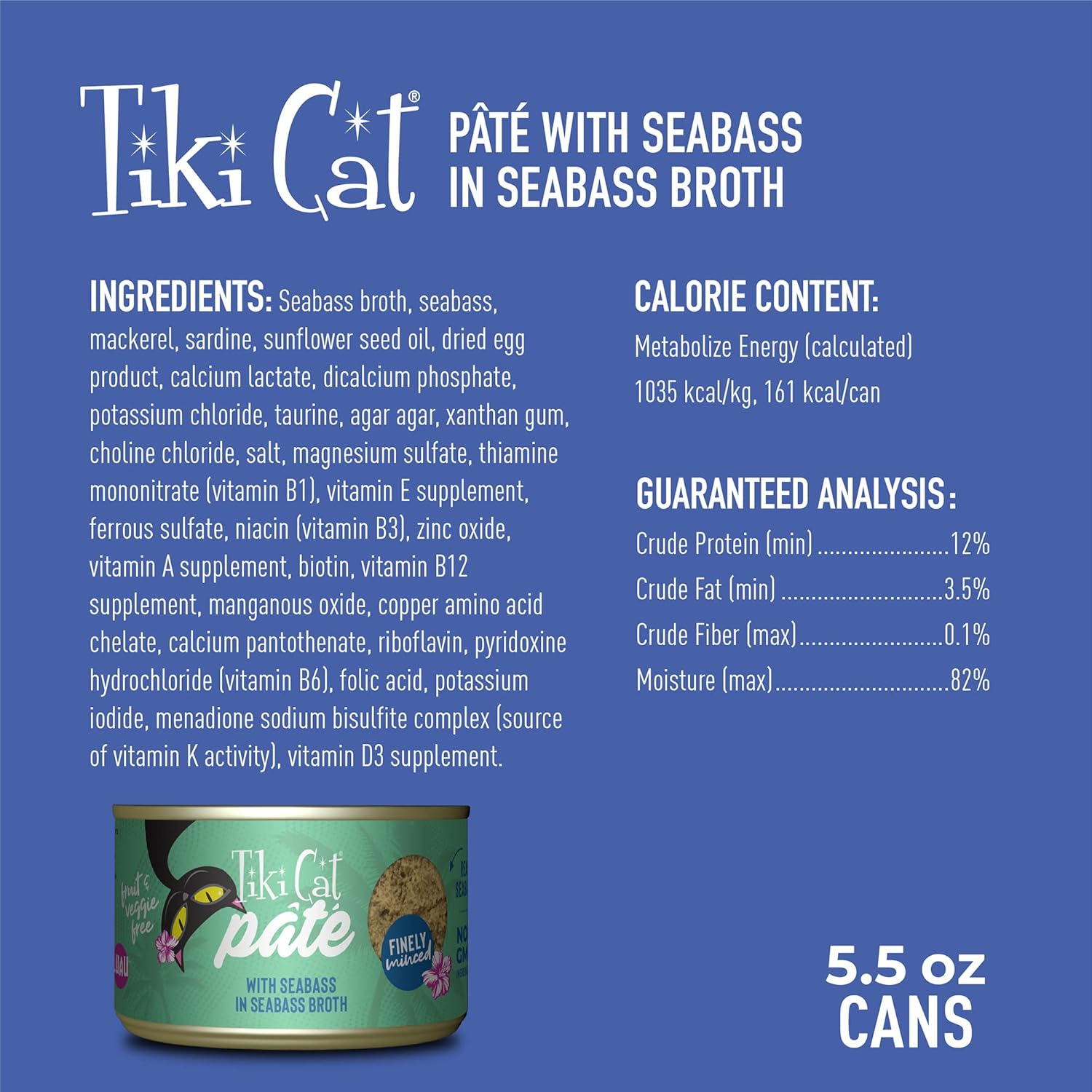 Tiki Cat Luau Pâté, Seabass Recipe in Seabass Consumme, Grain-Free Balanced Nutrition Wet Canned Cat Food, for All Life Stages