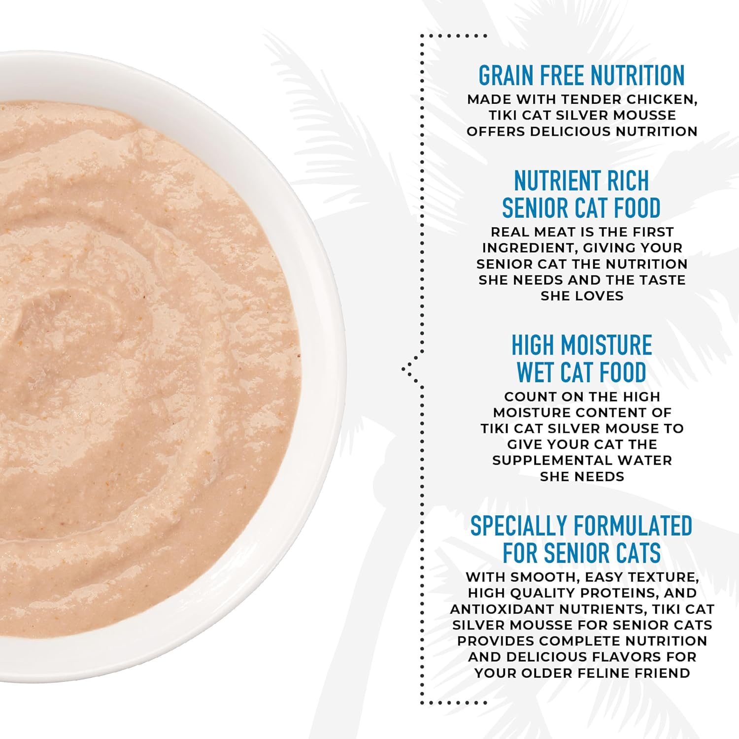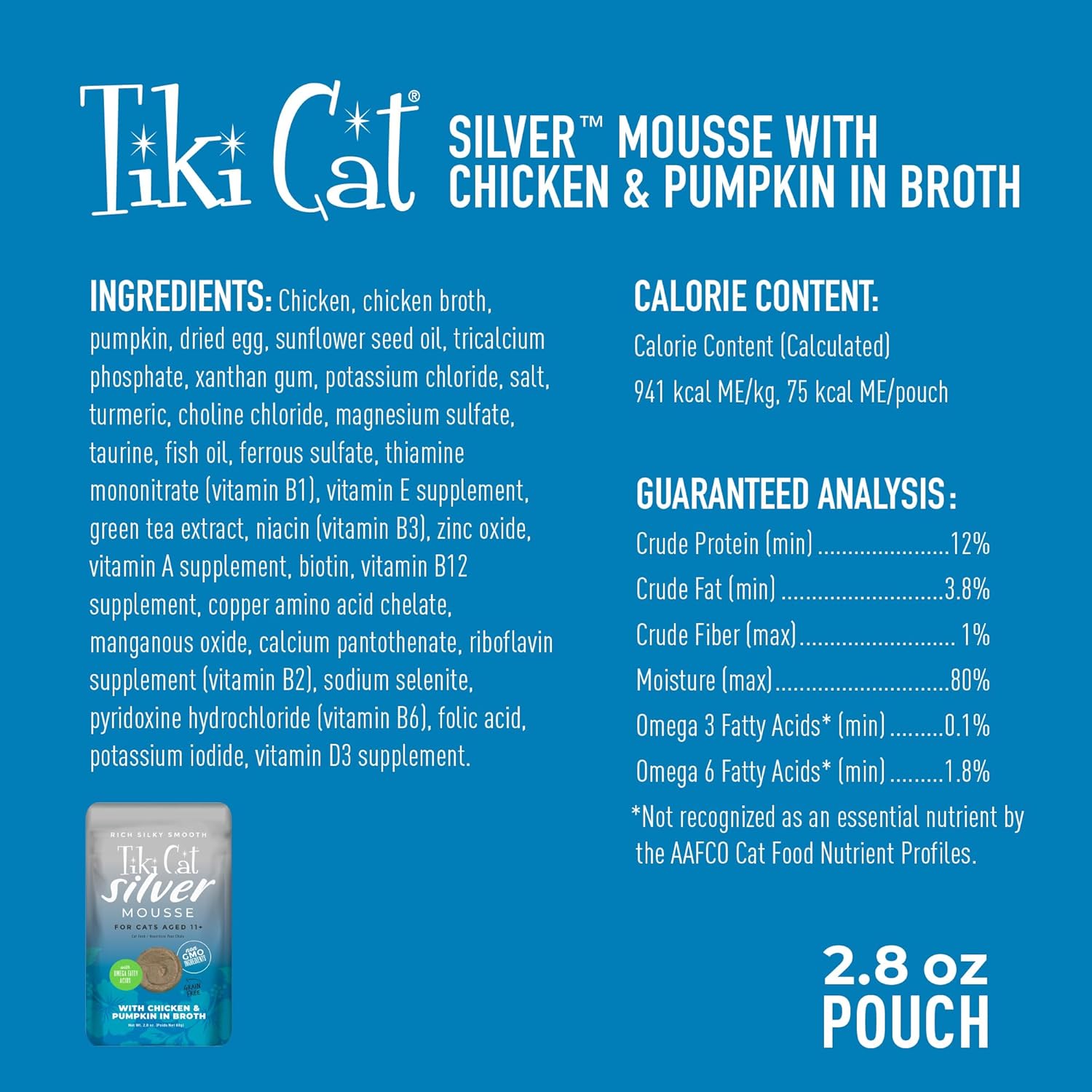 TIki Cat Silver Mousse, With Chicken & Pumpkin In Broth, Silky Smooth Nutrient Rich Formulated for Older Cats Aged 11+