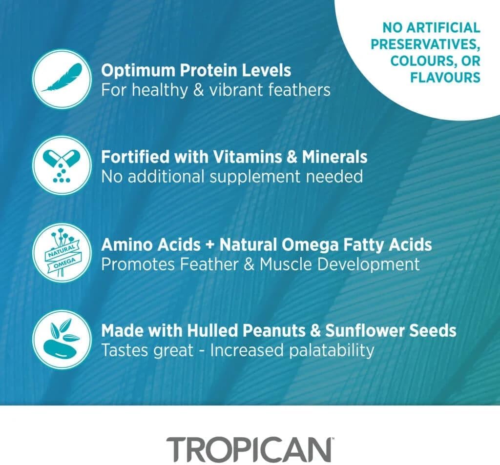 Tropican Bird Food, Hagen Parrot Food with Peanuts & Sunflower Seeds, Maintenance Parrot Granules 2 mm, Lifetime Formula, 1.8 lb Bag
