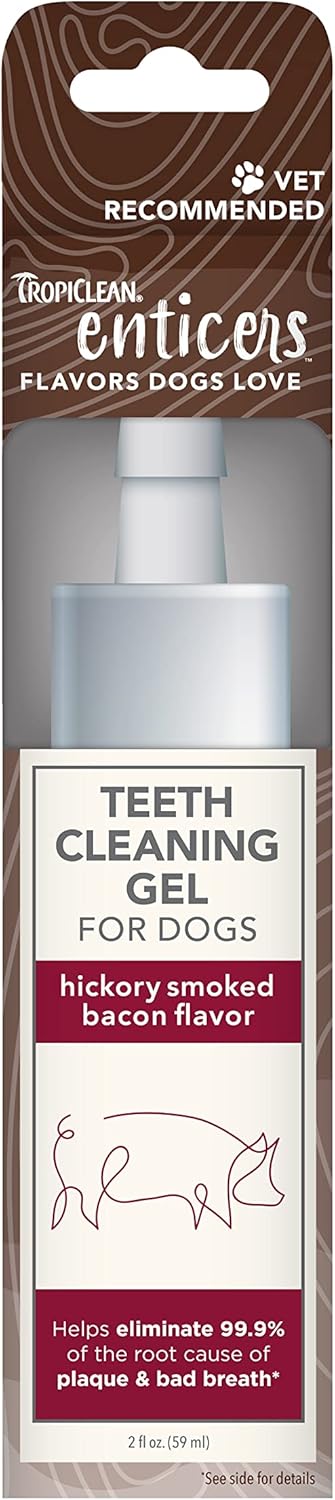TropiClean Enticers Dog Teeth Cleaning Treat Gel | Smoked Bacon Flavored Dog Toothpaste Alternative| 2 oz