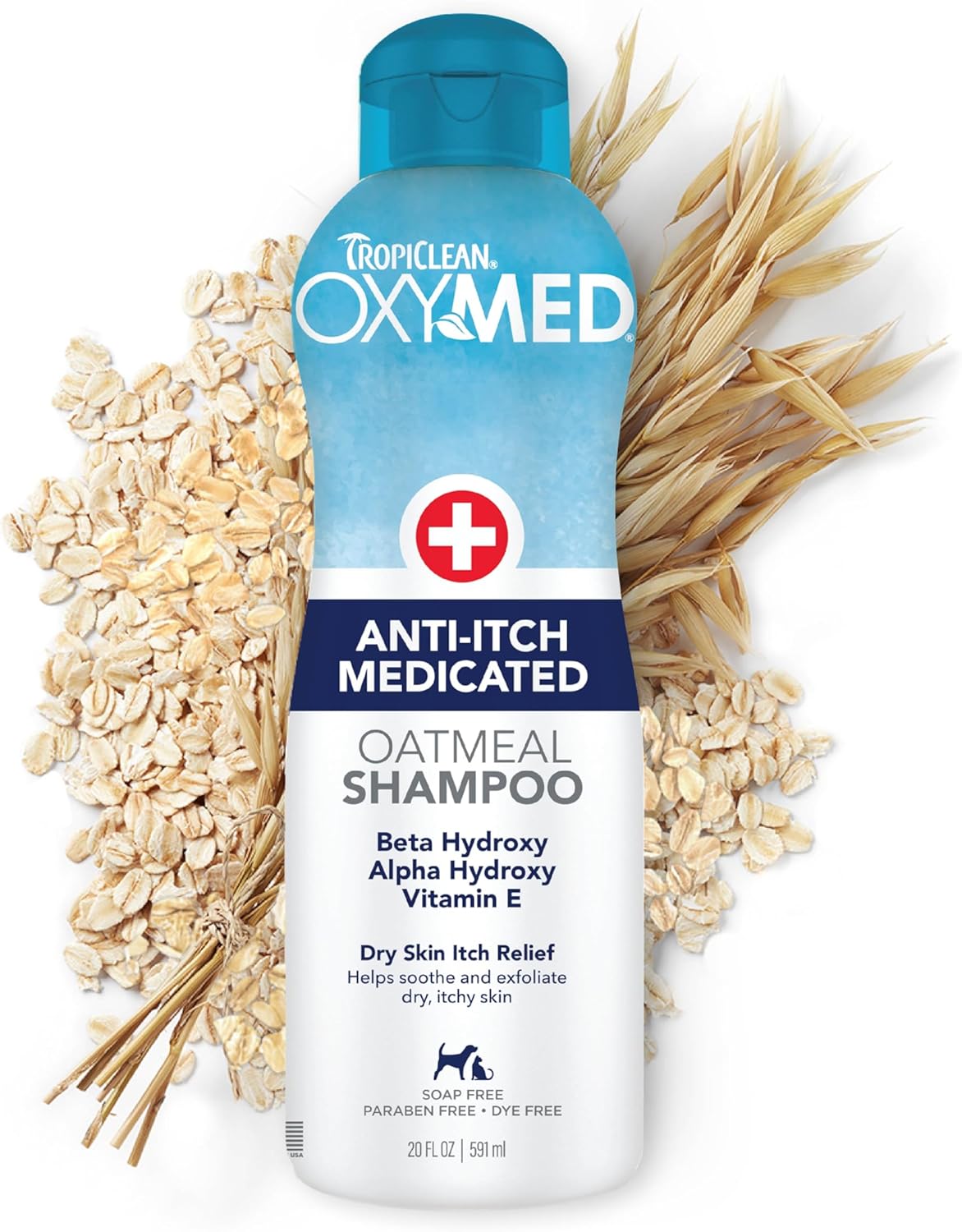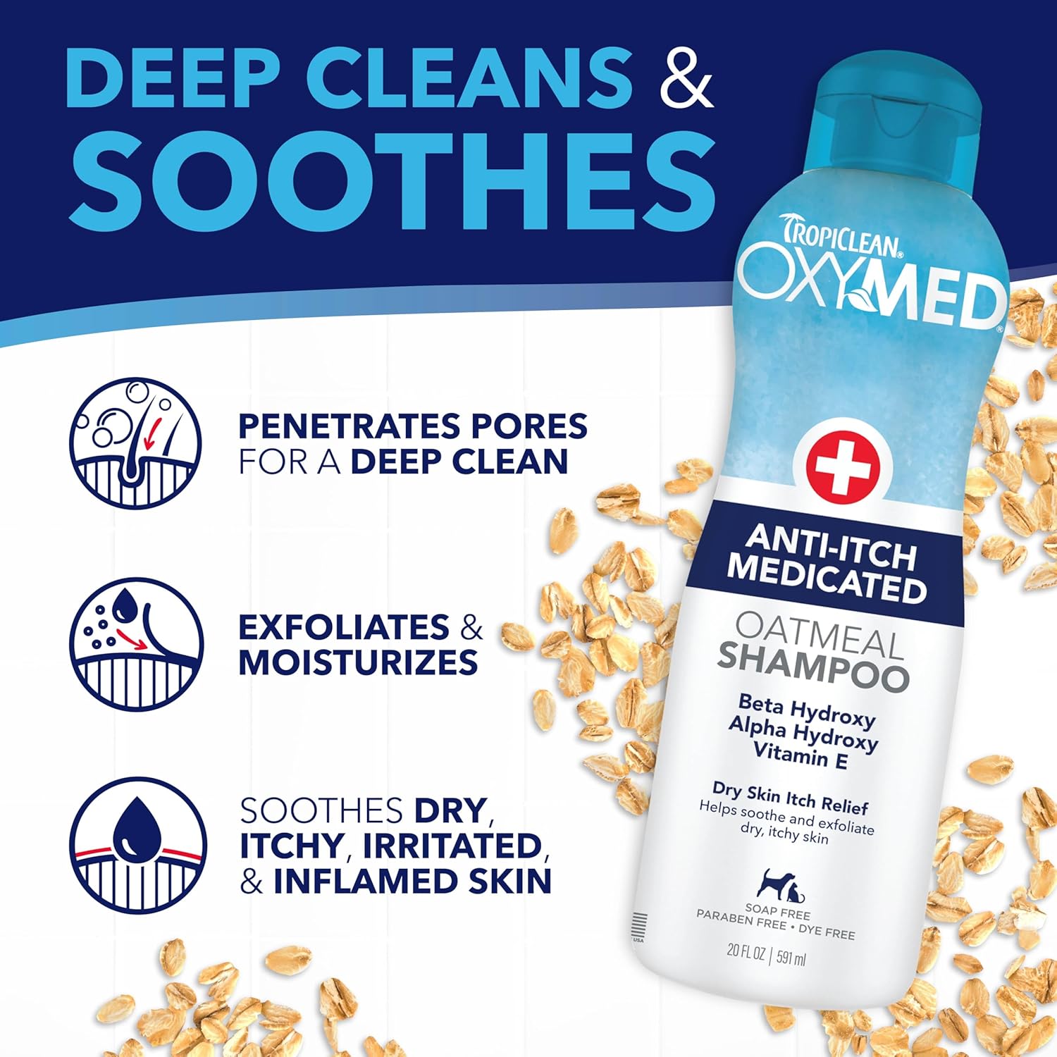 TropiClean OxyMed Dog Shampoo for Allergies and Itching , Medicated Oatmeal Shampoo for Dry Itchy Skin, Seborrhea, & Hot Spots 20 oz