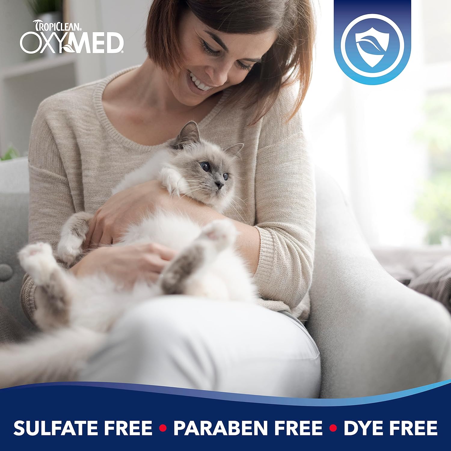 TropiClean Oxymed Waterless Cat Shampoo and Conditioner | A No-Rinse Cat Wash for Hairball Relief |