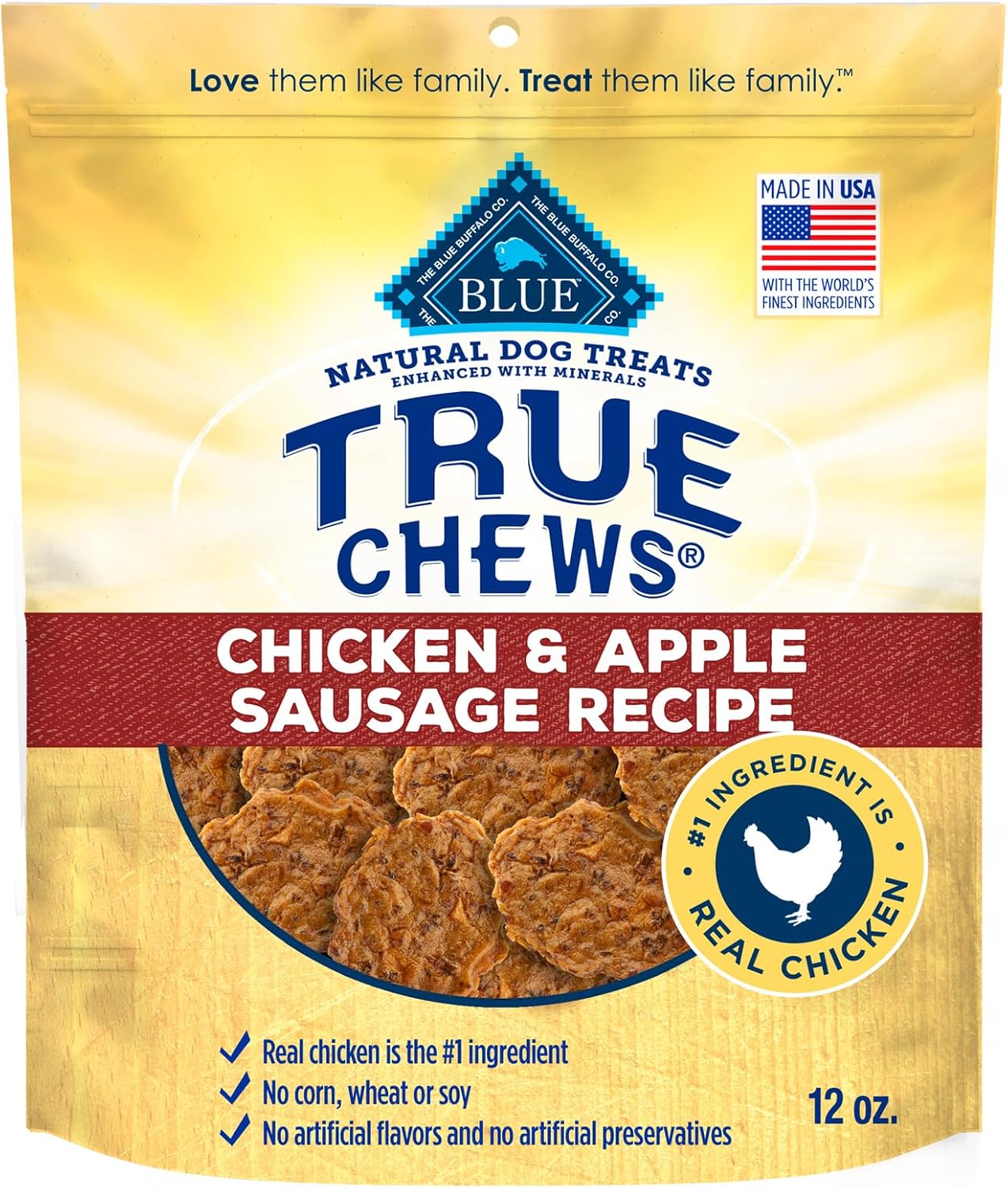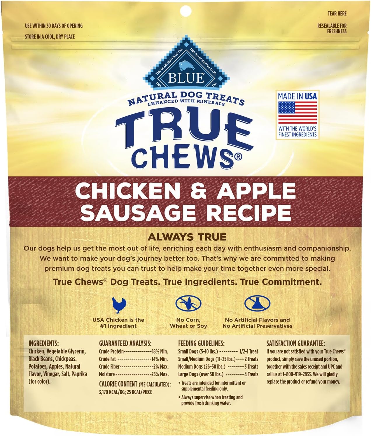 True Chews - Blue Buffalo True Chews Dog Treats, Made in the USA with Natural Ingredients, Chicken and Apple Sausage Recipe, 12-oz Bag
