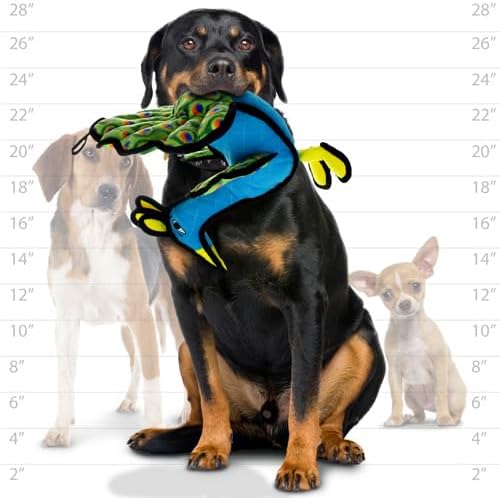 TUFFY - World's Tuffest Soft Dog Toy -Zoo Peacock- Multiple Layers. Made Durable, Strong & Tough. Interactive Play (Tug, Toss & Fetch). Machine Washable & Floats