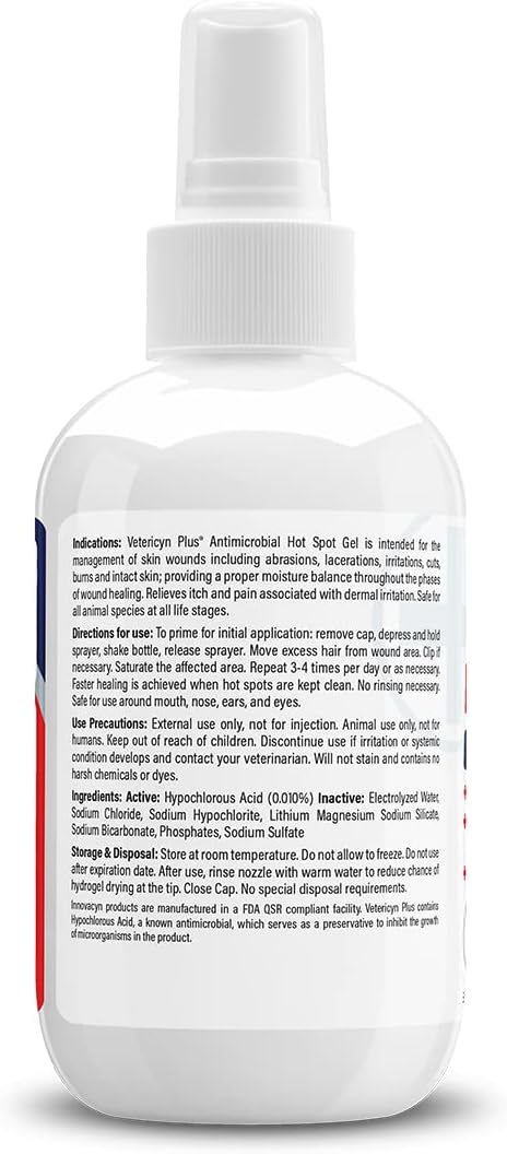 Vetericyn Plus Dog Hot Spot Gel | Spray-On Hot Spot Care for Dogs, Relieves Dog Itchy Skin and Allergy Symptoms, Helps with Skin Inflammation and Redness, Safe for All Animals. 3 ounces