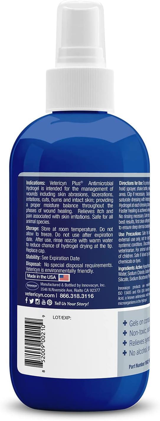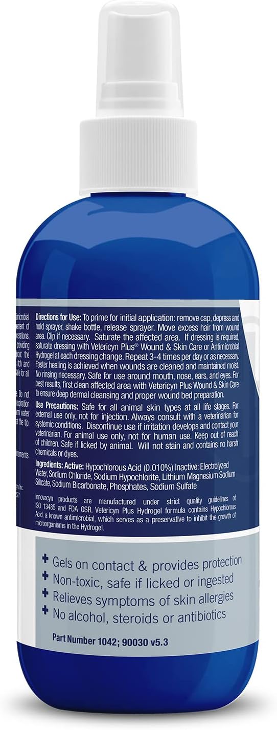 Vetericyn Plus Dog Wound Care Hydrogel Spray | Healing Aid and Wound Protectant, Sprayable Gel to Relieve Dog Itchy Skin, Safe for All Animals. 8 Ounces