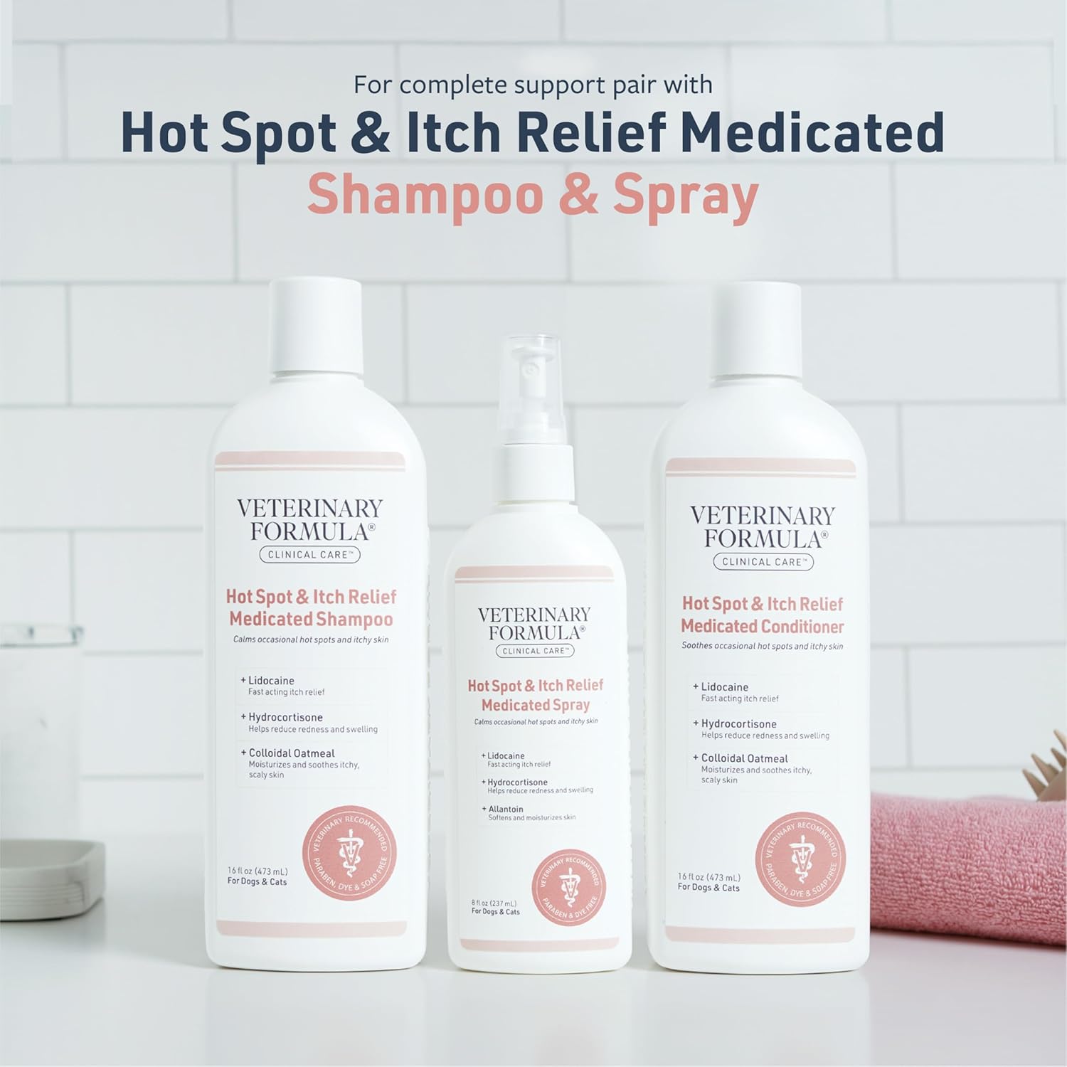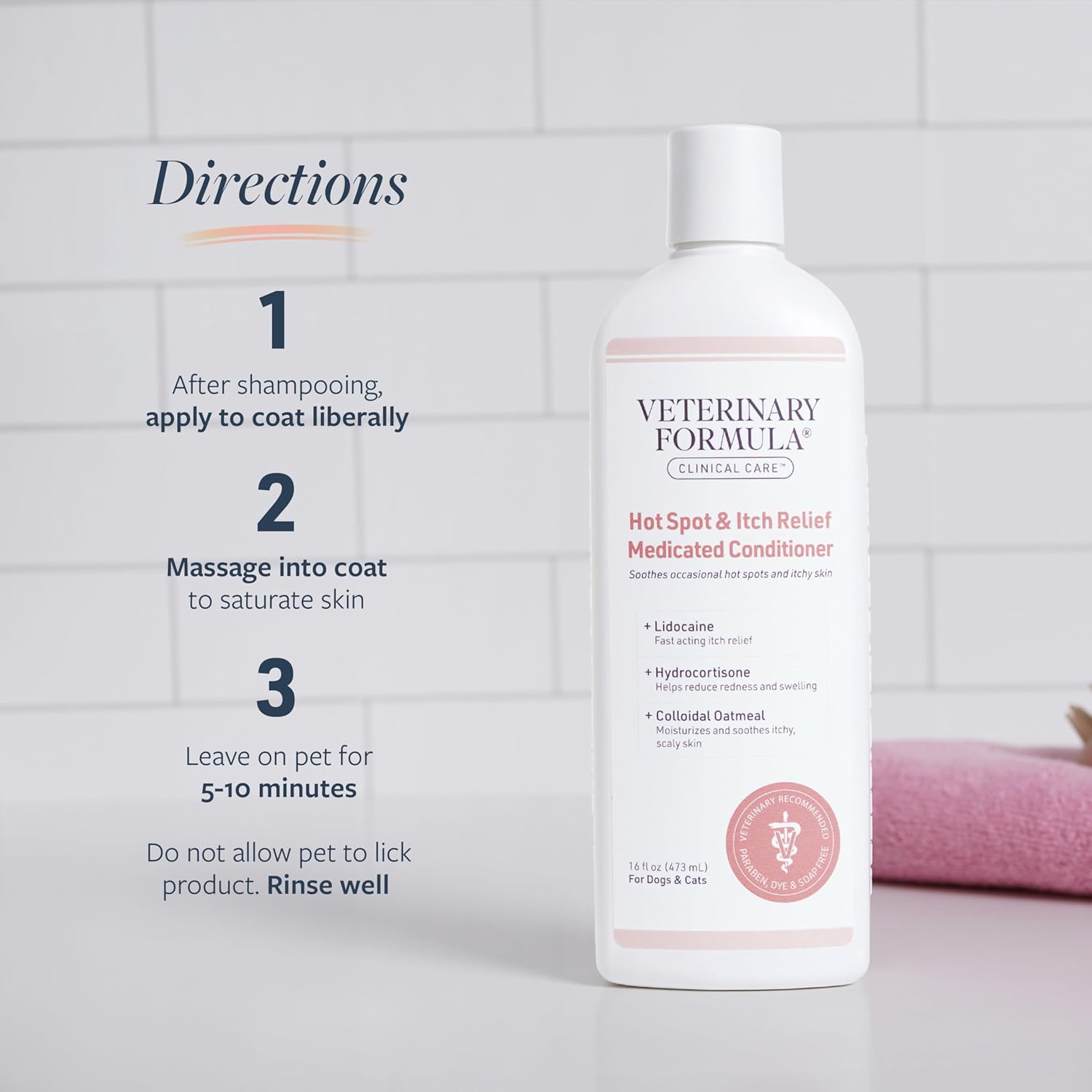 Veterinary Formula Clinical Care Hot Spot & Itch Relief Cat & Dog Medicated Conditioner – Oatmeal Conditions Skin for a Lustrous Coat, Formulated to Help Alleviate Itchy Skin