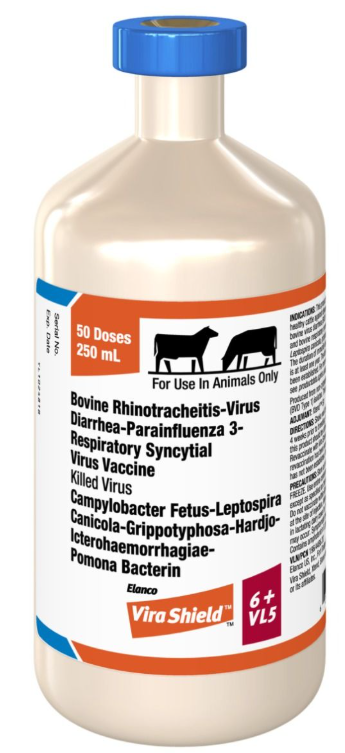 Vira Shield® 6 + VL5 is a killed virus vaccine for healthy cattle and heifers designed to aid in the prevention of respiratory, reproductive, and bacterial diseases, including viral and bacterial pathogens. Safe for pregnant cows at any stage of gestation and calves nursing pregnant cows.