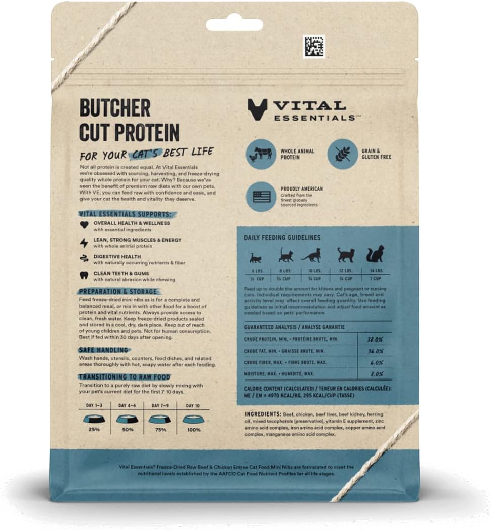 Vital Essentials Freeze Dried Raw Cat Food, Beef & Chicken Mini Nibs Entree, 8 oz