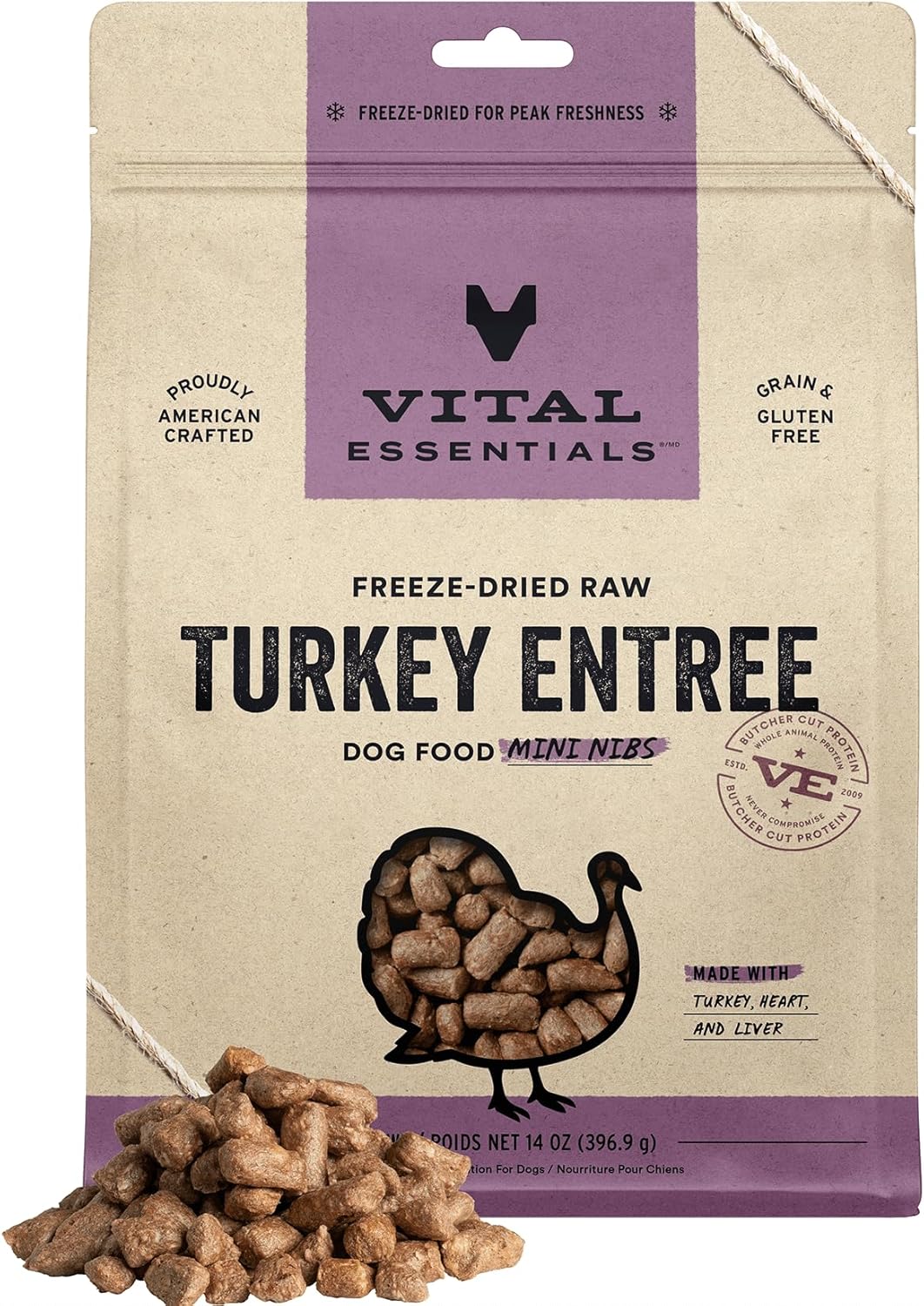 Vital Essentials Freeze Dried Raw Dog Food, Turkey Mini Nibs Entree, 14 oz