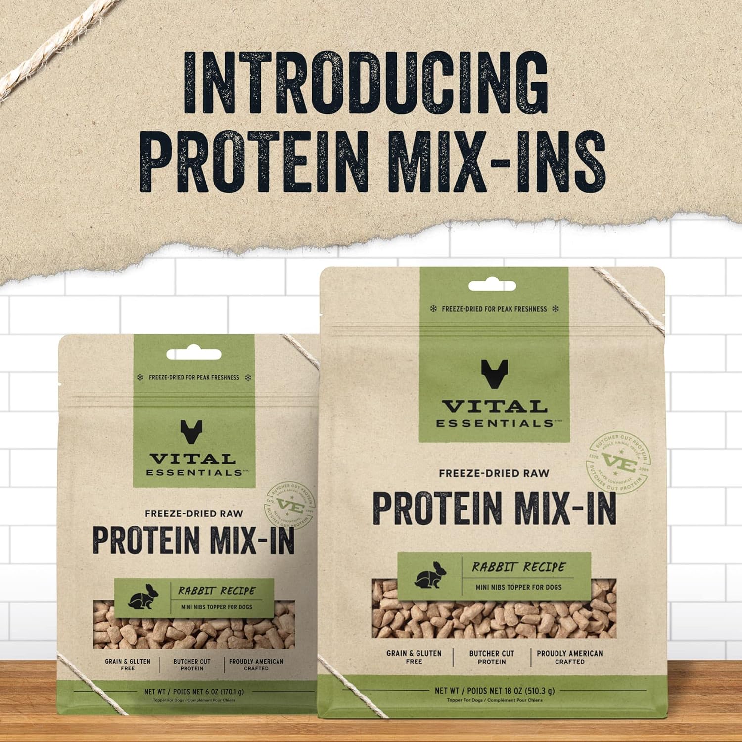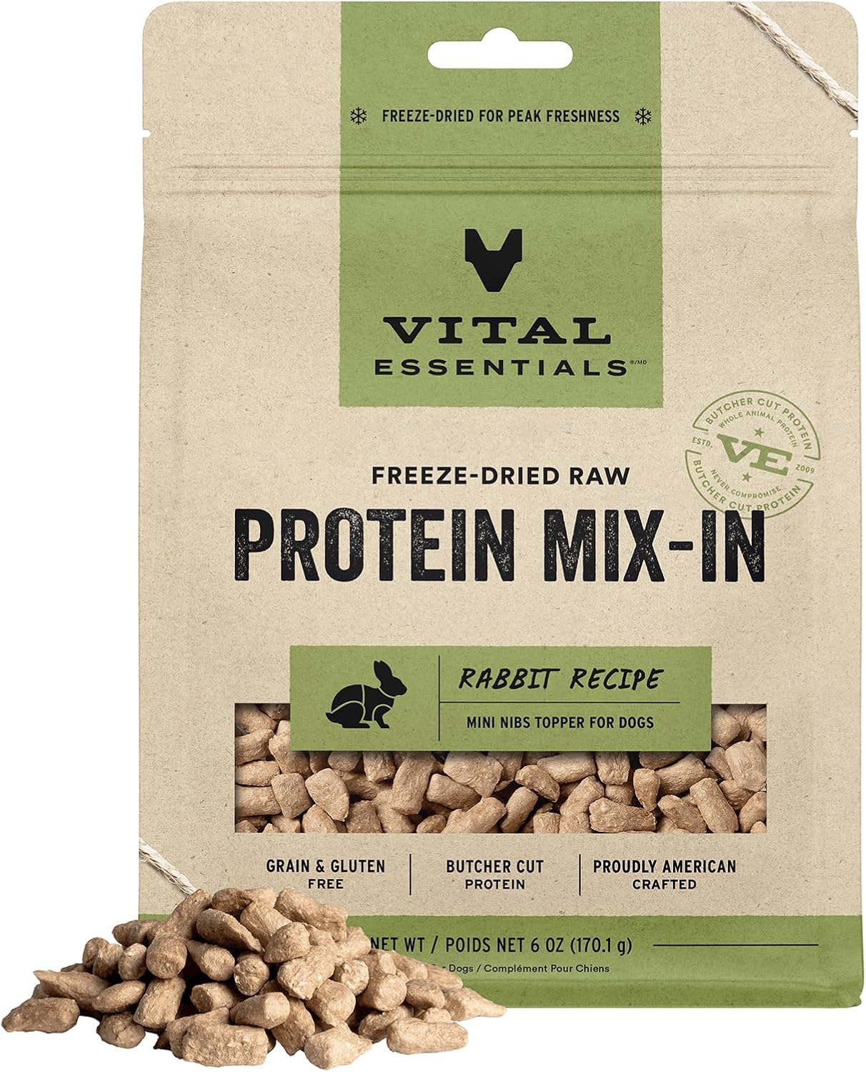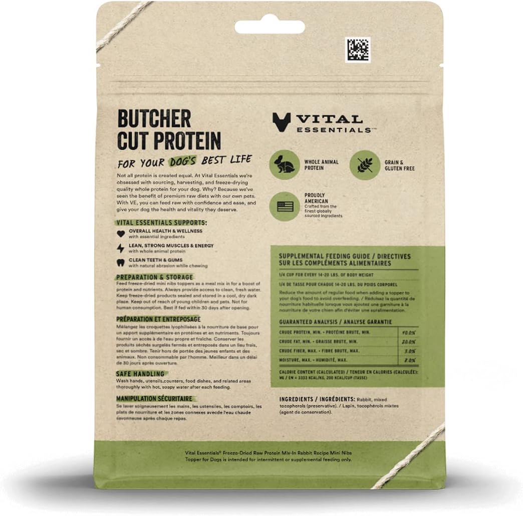 Vital Essentials Freeze Dried Raw Protein Mix-in Dog Food Topper, Rabbit Mini Nibs Topper for Dogs, 6 oz