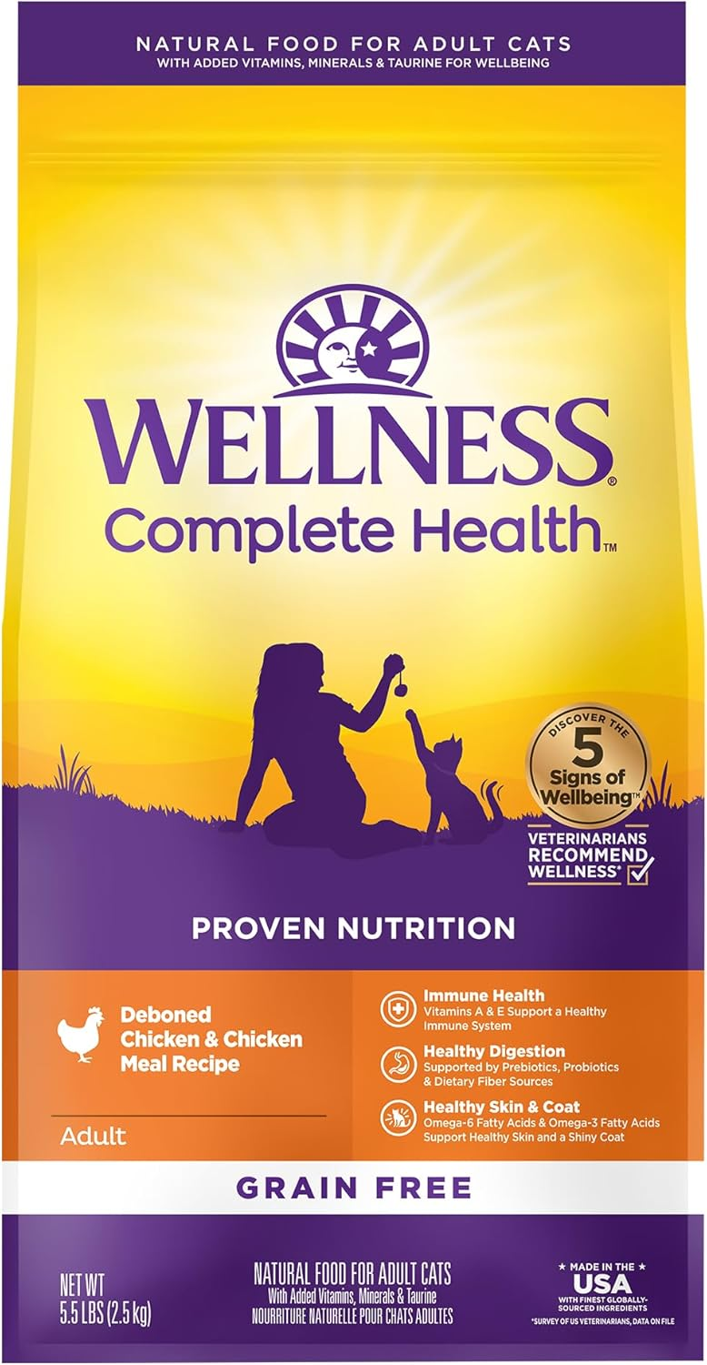 Wellness Complete Health Adult Dry Cat Food for Indoor and Outdoor Cats, Grain Free, Natural, Chicken & Chicken Meal