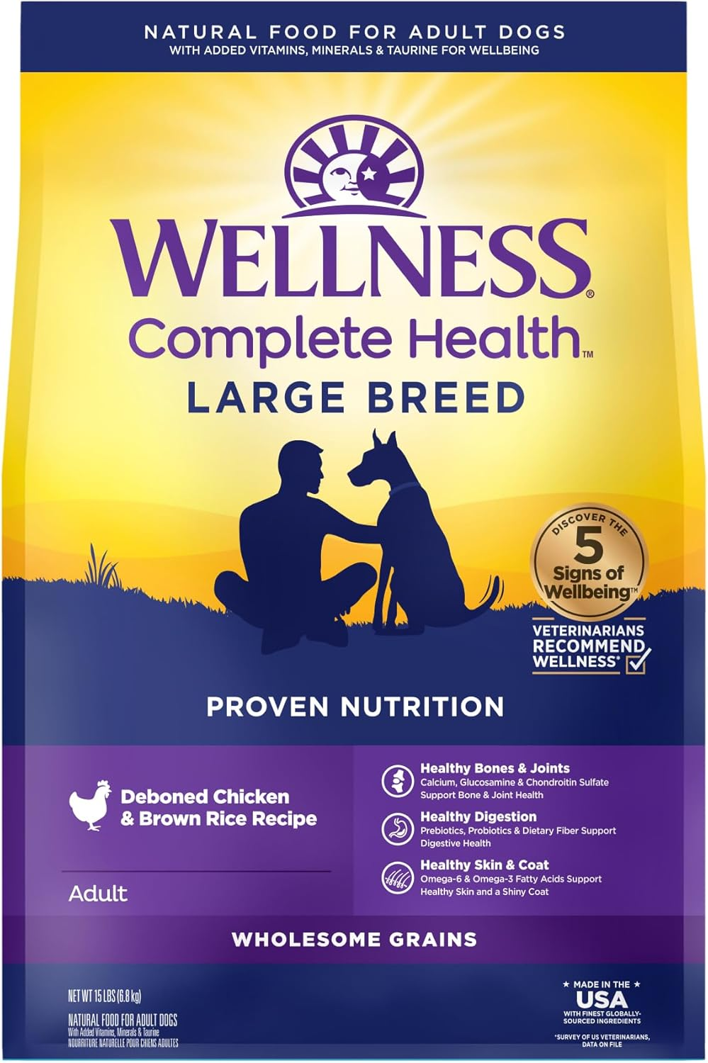 Wellness Complete Health Large Breed Dry Dog Food with Grains, Natural Ingredients, Made in USA with Real Meat (Adult, Chicken & Rice)