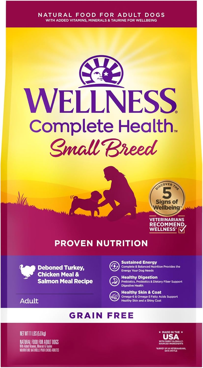 Wellness Complete Health Dry Dog Food, Small Breed, Grain Free, Natural, Turkey, Chicken, & Salmon Recipe