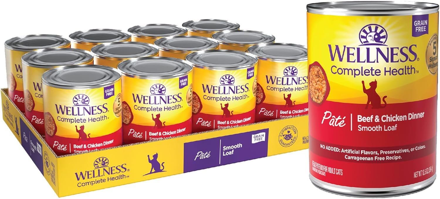Wellness Complete Health Pate Adult Wet Cat Food, Natural, Protein-Rich, Grain Free (Beef & Chicken)