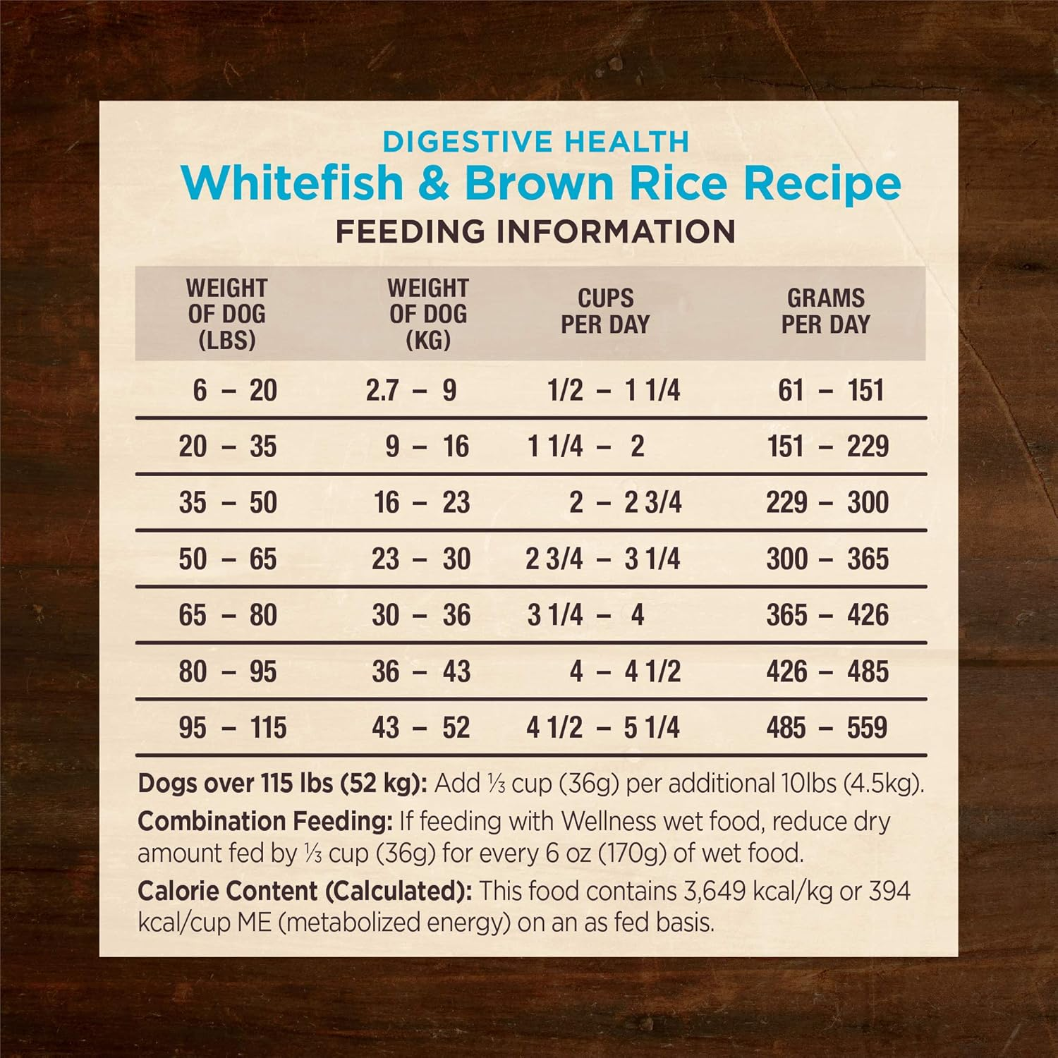 Wellness CORE Digestive Health Dry Dog Food, Wholesome Grains, Natural, Ingredients for Dogs with Sensitive Stomachs, Whitefish & Brown Rice Recipe