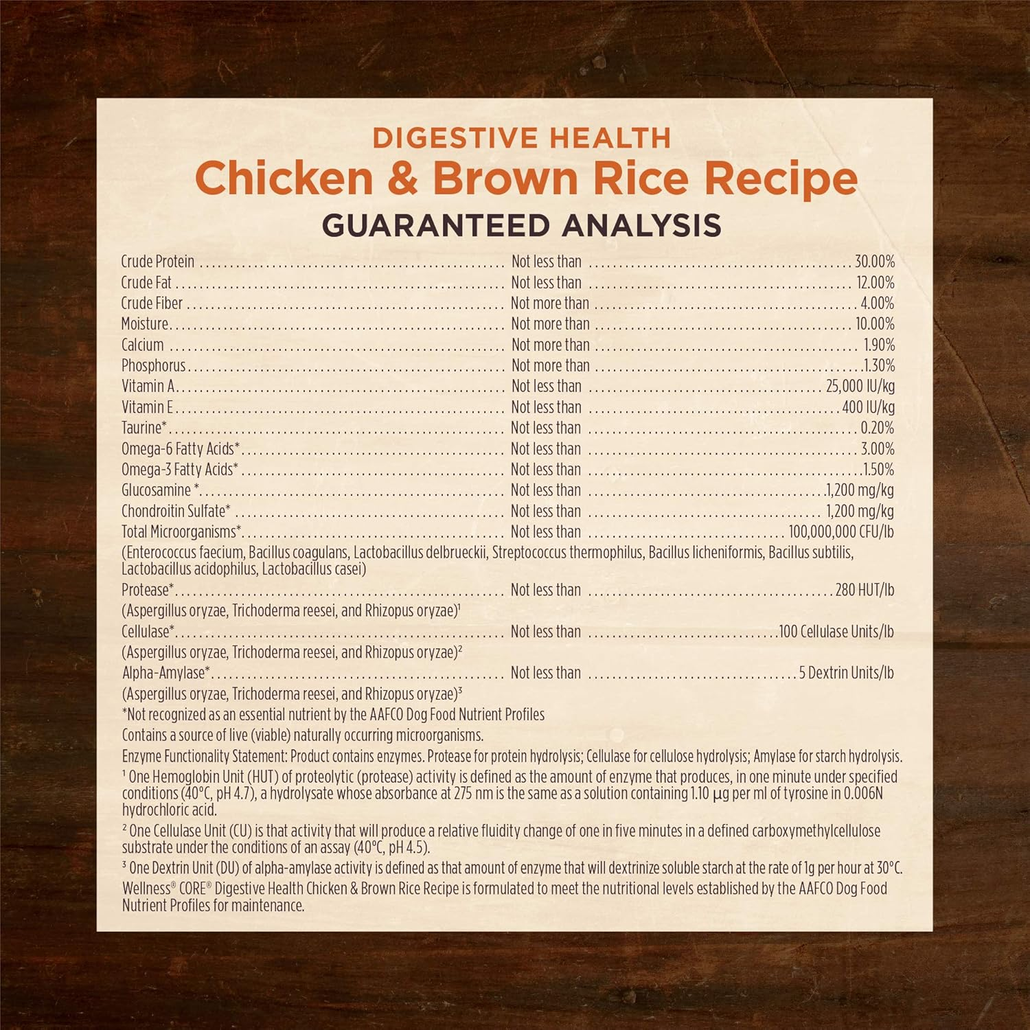 Wellness CORE Digestive Health Dry Dog Food with Wholesome Grains, Highly Digestible, for Dogs with Sensitive Stomachs, Made in USA with Real Chicken