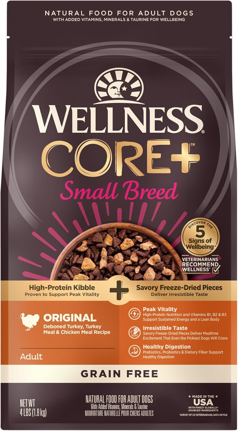 Wellness CORE+ (Formerly RawRev) Natural Grain Free Small Breed Dry Dog Food, Original Turkey & Chicken with Freeze Dried Turkey