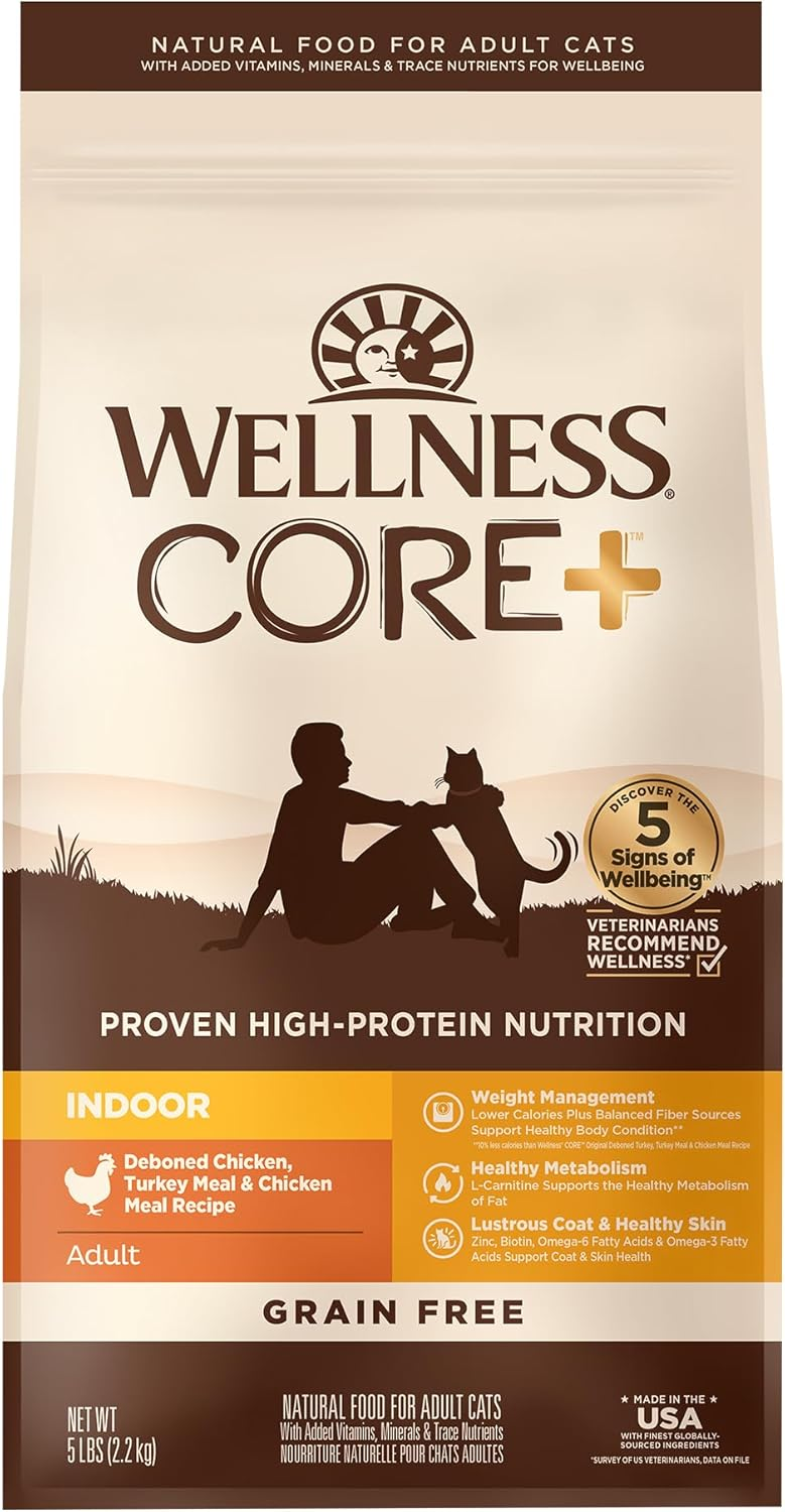 Wellness CORE+ Grain-Free High Protein Adult Dry Cat Food, Chicken, Turkey & Chicken Meal Indoor Formula Dry Cat Food