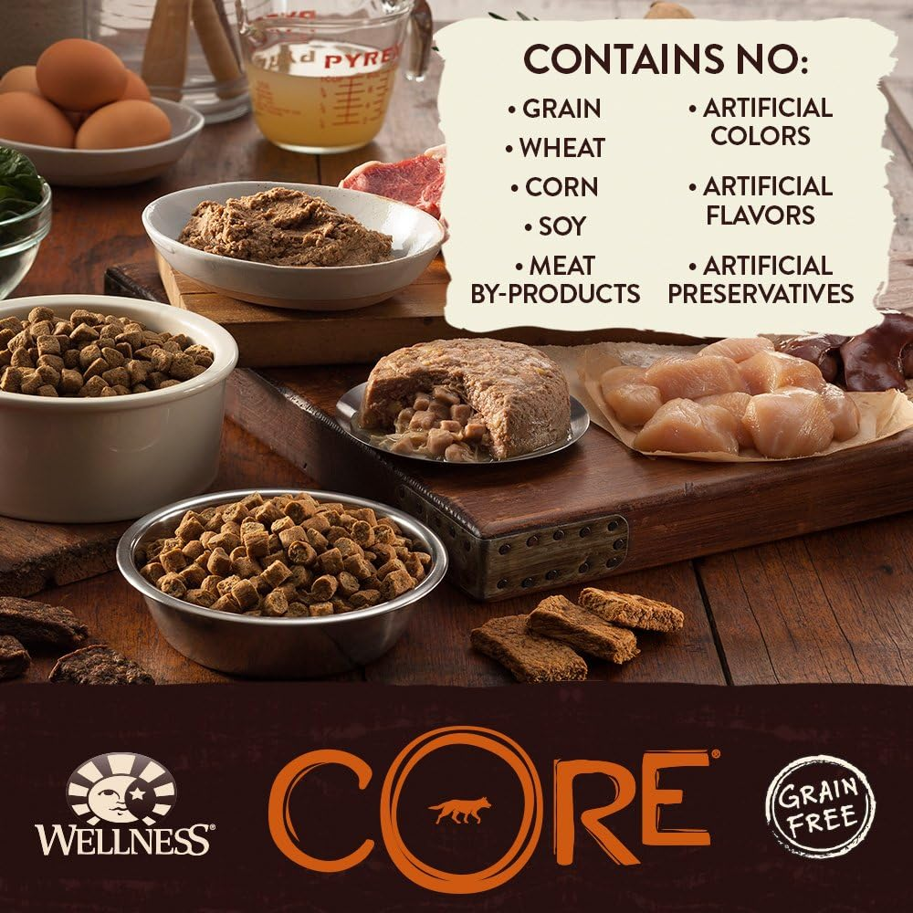 Designed with your dog's well-being in mind, this formula is ideal for those needing to maintain or achieve a healthier weight. Its reduced-fat content helps in controlling calorie intake while still providing the rich flavor and nourishment your pet loves. With no artificial preservatives, colors, or flavors, Wellness CORE delivers a natural and wholesome meal that supports your dog's vitality and energy levels.
