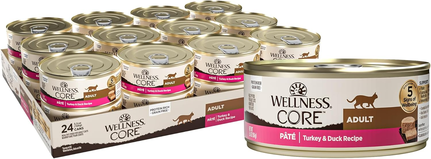 Wellness CORE Pate Adult Wet Cat Food, Natural, Protein-Rich, Grain Free (Turkey & Duck)