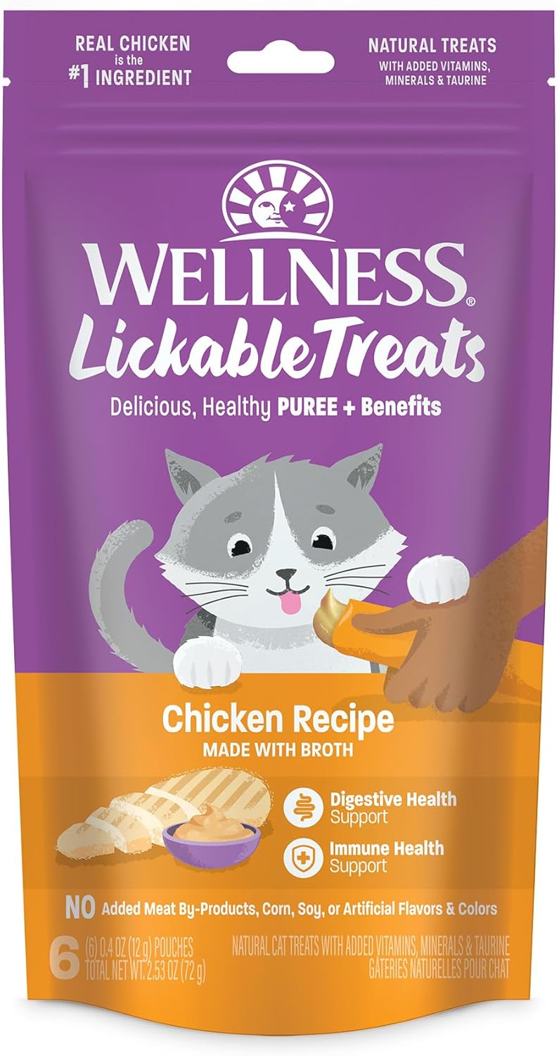 Wellness Lickable Treats Soft Puree Natural Grain Free Adult Cat Treats, Chicken Recipe
