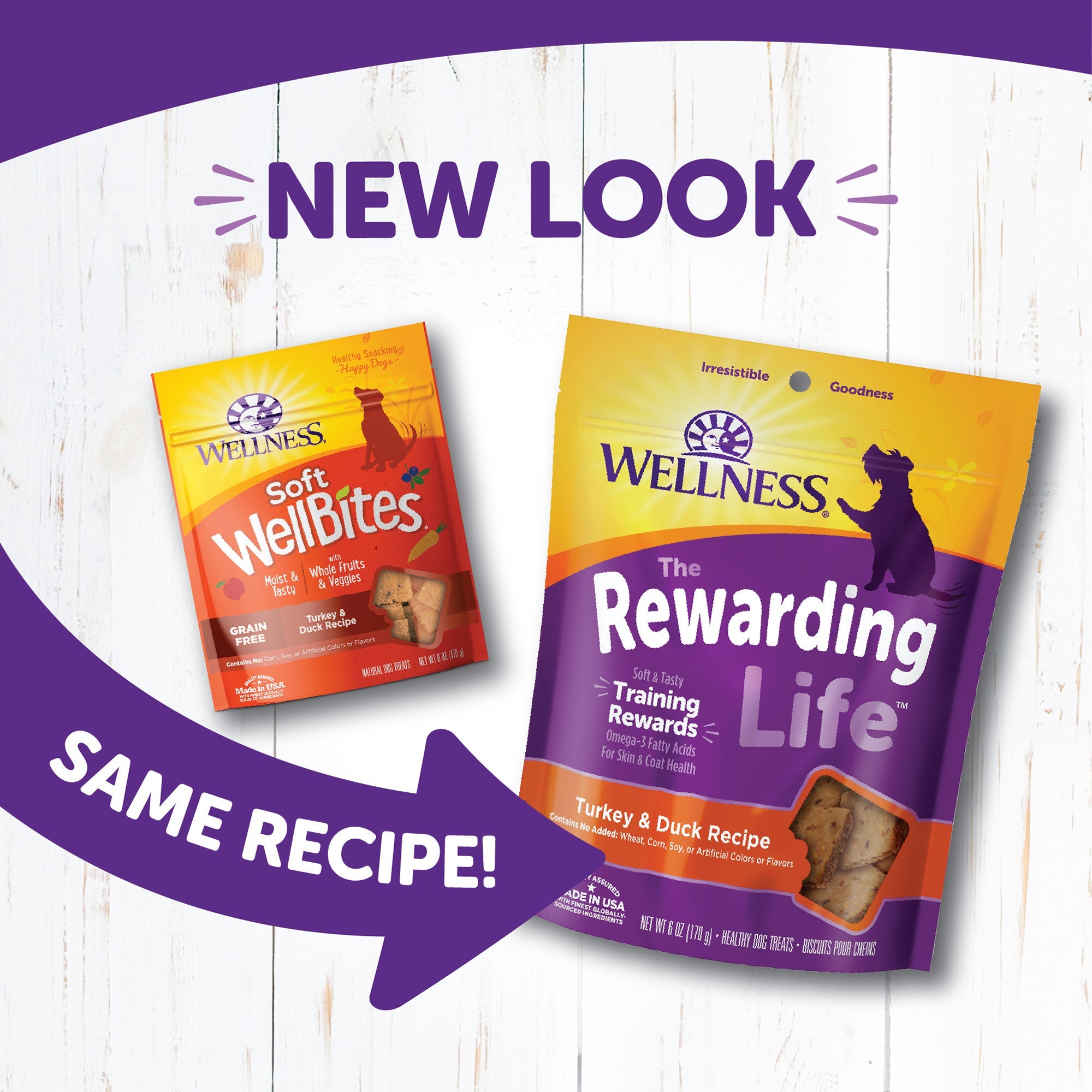 Wellness Rewarding Life Dog Treats, Natural, Training Treat, Grain Free, Soft Turkey & Duck