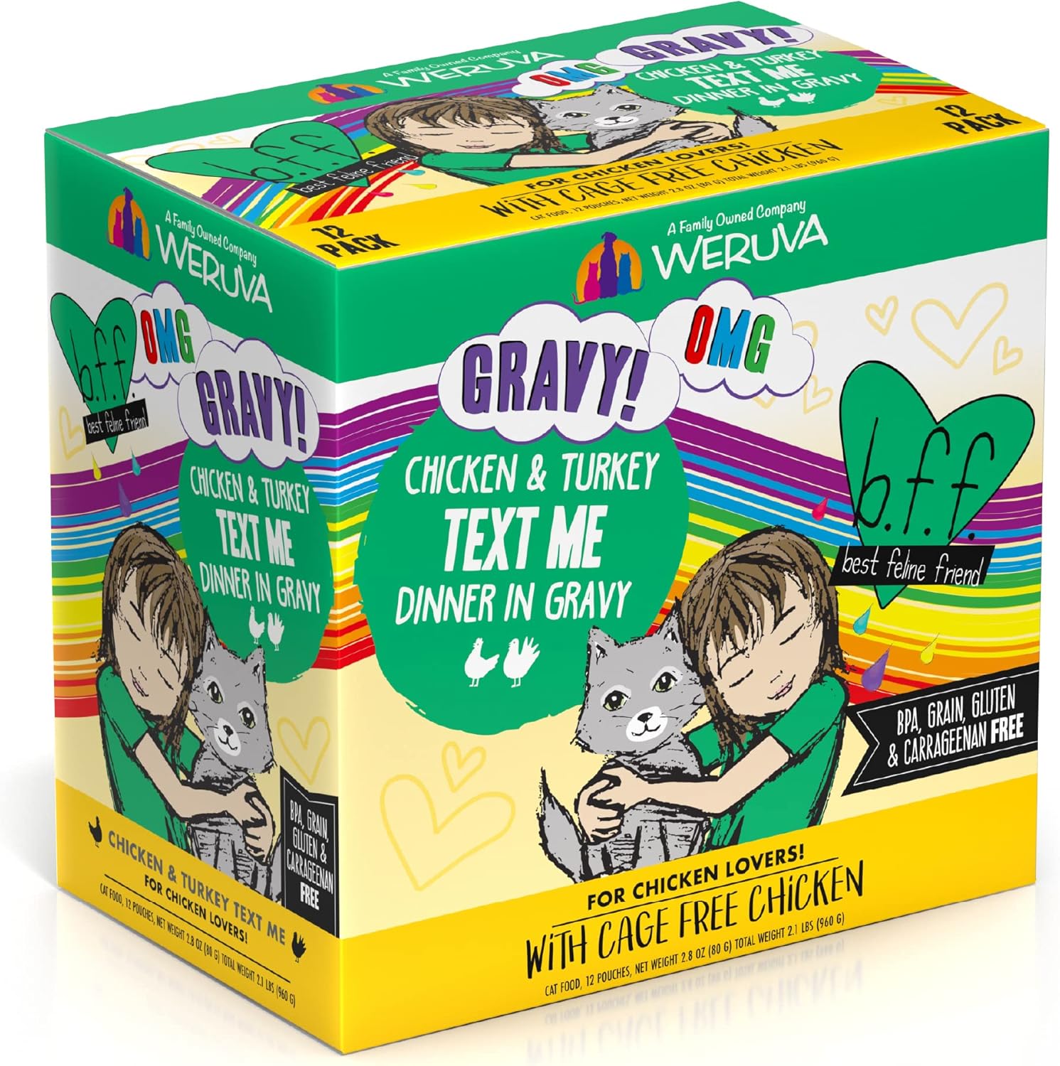 Weruva B.F.F. OMG - Best Feline Friend Oh My Gravy!, Chicken & Turkey Text Me with Chicken & Turkey in Gravy 2.75-oz(Pack of 12)