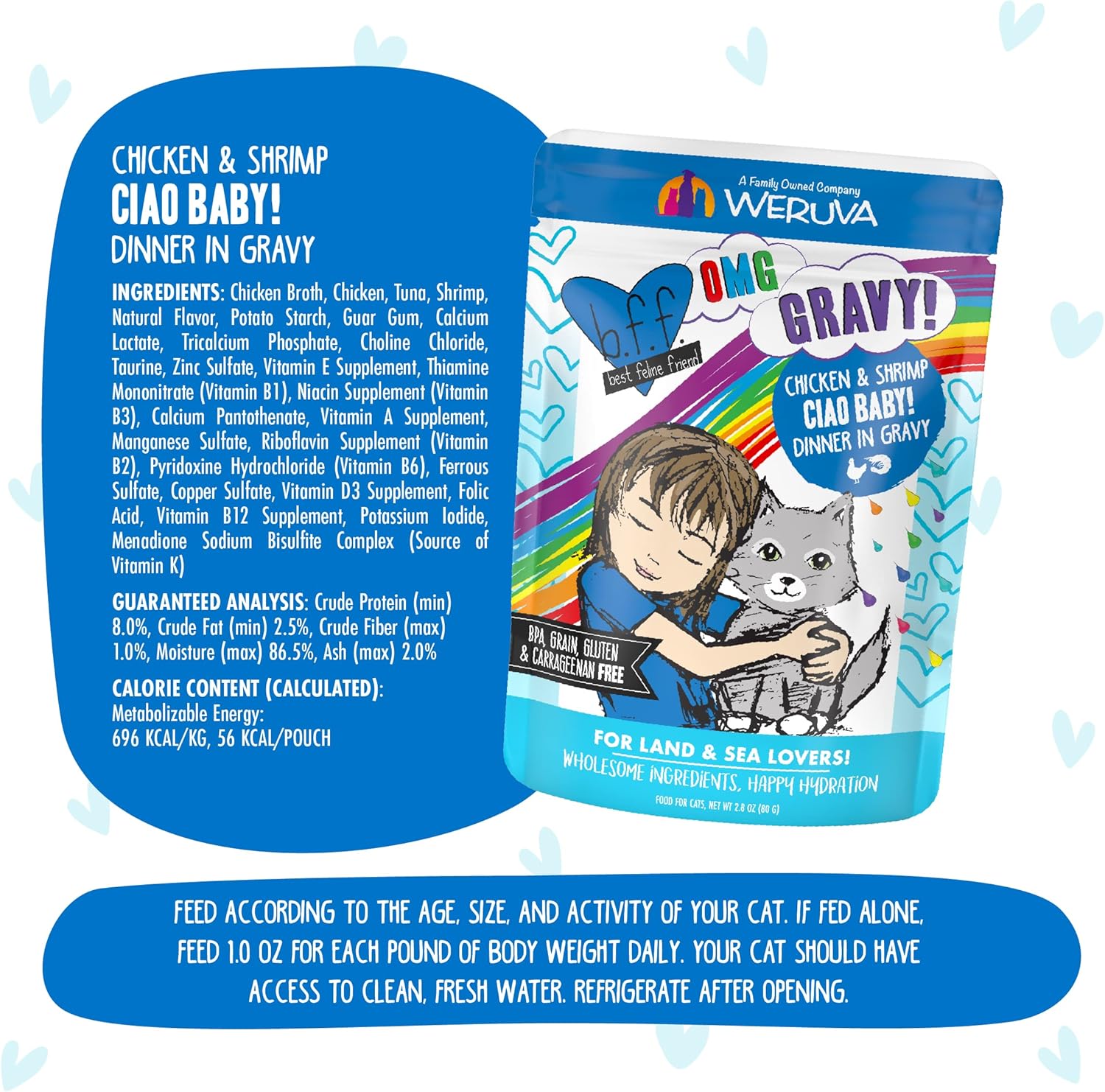 Weruva B.F.F. OMG - Best Feline Friend Oh My Gravy!, Ciao Baby! with Chicken & Shrimp in Gravy Cat Food