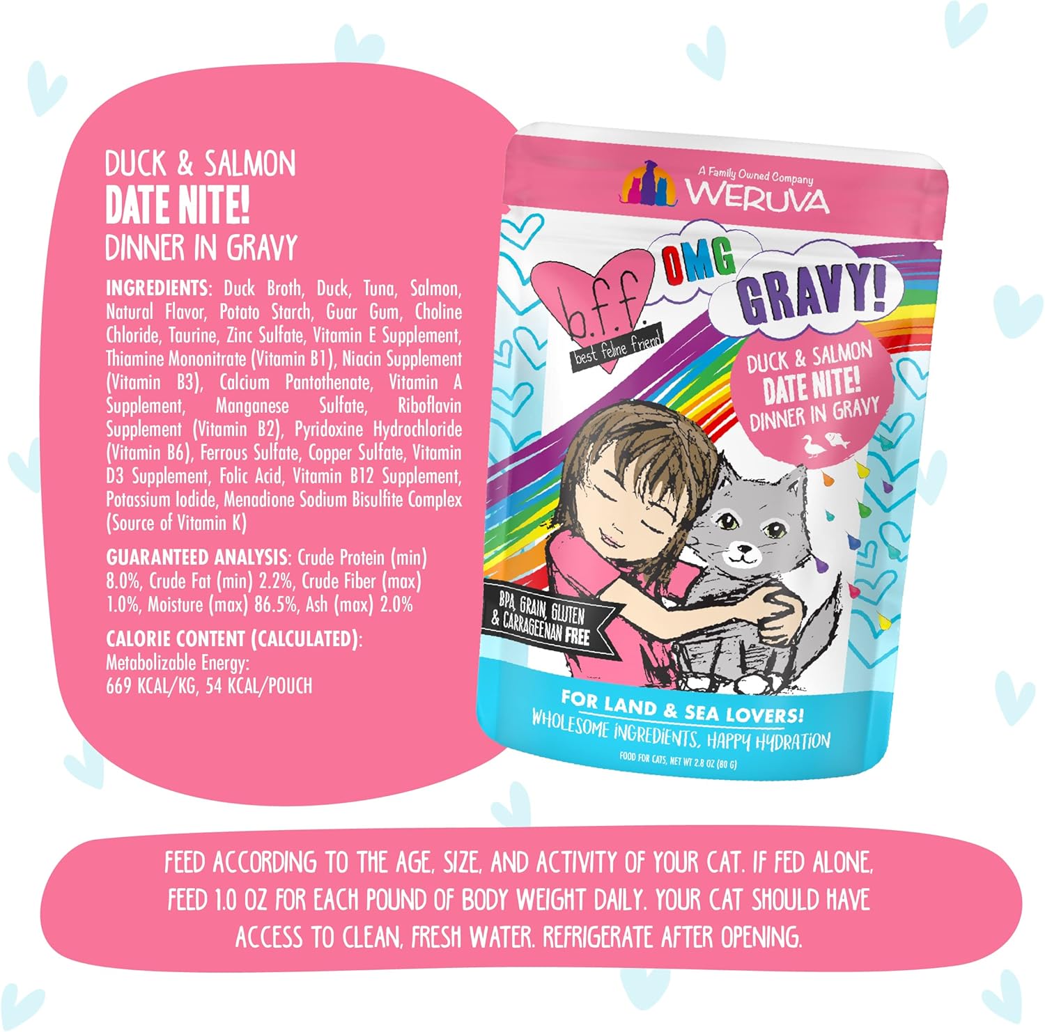 Weruva B.F.F. OMG - Best Feline Friend Oh My Gravy!, Date Nite! with Duck & Salmon in Gravy Cat Food