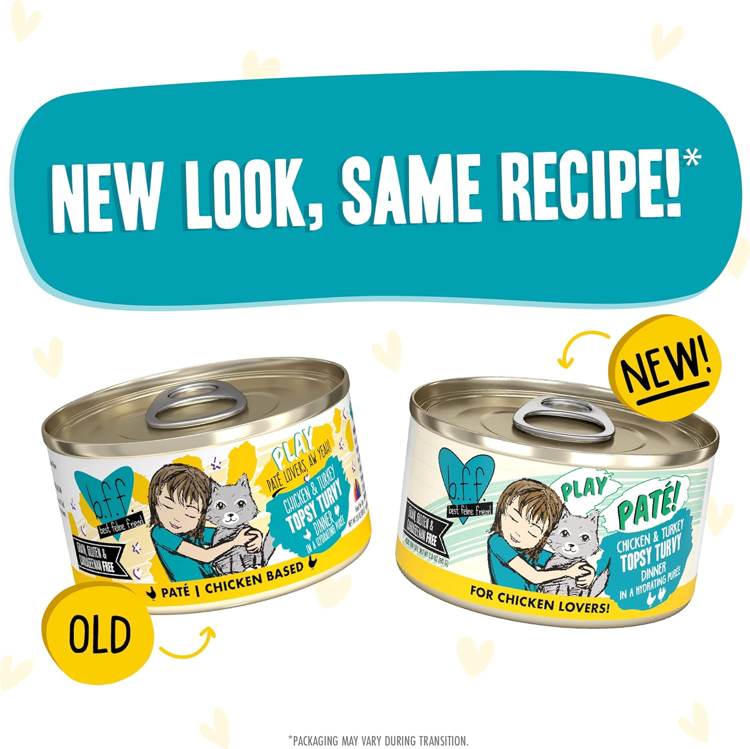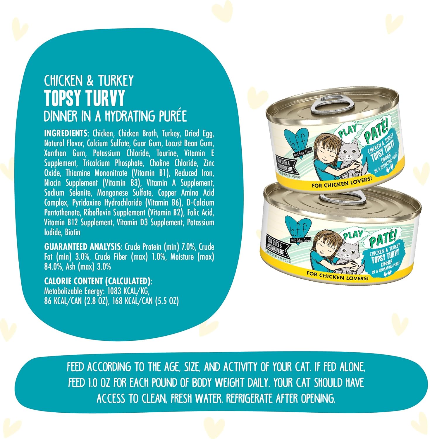 Weruva B.F.F. Play - Best Feline Friend Paté Lovers, Aw Yeah!, Chicken & Turkey Topsy Turvy with Chicken & Turkey